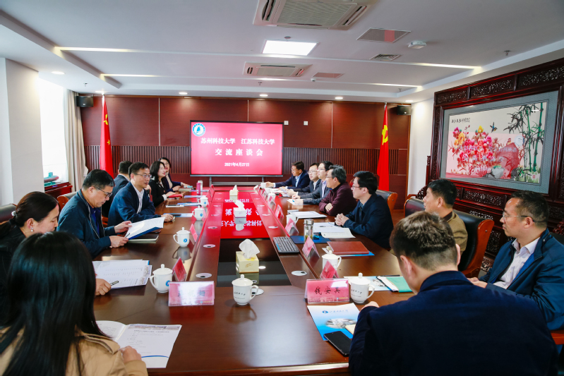 4月27日下午,苏州科技大学副校长吴健荣一行来校调研交流。校党委副书记、副校长景旭文出席调研座谈。