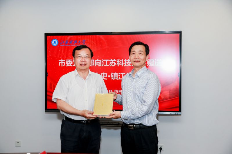 5月25日,镇江市委宣传部向必赢bwin官网登录入口赠送《江苏地方文化史·镇江卷》仪式在学校八楼会议室举行,镇江市二级巡视员、《江苏地方文化史·镇江卷》主编潘法强向校长周南平赠送书籍。