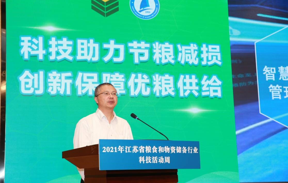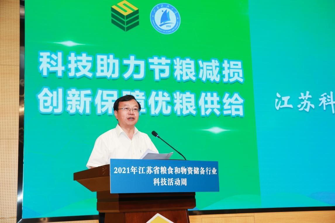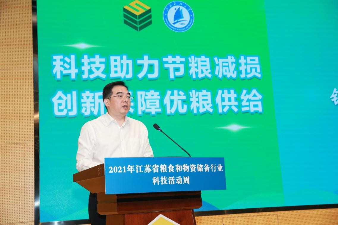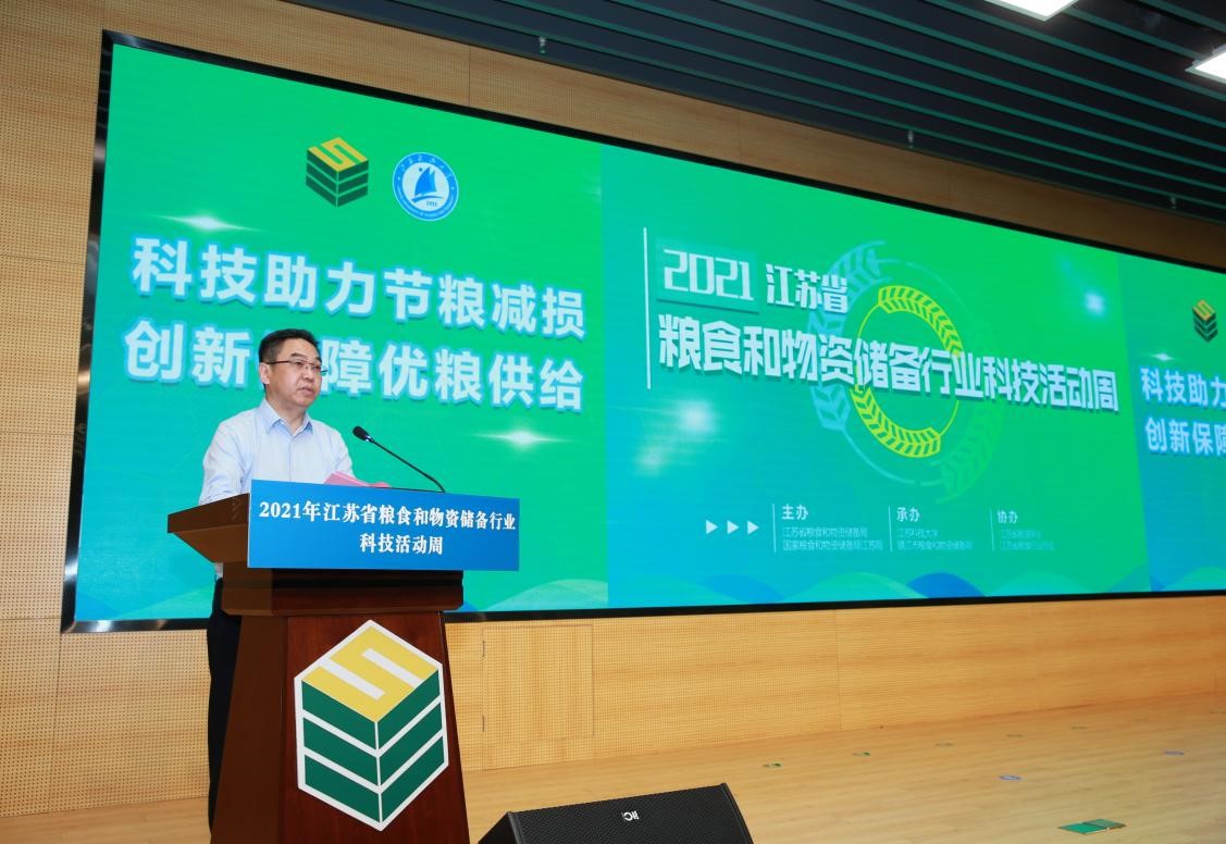 5月27日,2021年江苏省粮食和物资储备科技活动周主会场活动在必赢bwin官网登录入口长山校区举行。国家粮食和物资储备局江苏局分党组书记、局长吴永顺,镇江市人民政府副秘书长顾明华,必赢bwin官网登录入口党委副书记、校长周南平,新华日报社党委委员、扬子晚报总编辑王文坚, 江苏省作家协会副主席祁智,江苏省粮食行业协会会长刘习东,江苏省粮油学会秘书长何广龙等领导出席会议。国家粮食和物资储备局江苏局、省粮食和物资储备局相关处室负责人,各设区市粮食和物资储备局科技、人才分管局长、处长,江苏省涉粮院校代表,相关科技创新中心负责同志,“水韵苏米”征文比赛获奖代表,相关企业代表,新闻界朋友,必赢bwin官网登录入口相关职能部门负责同志和粮食学院师生参加了本次活动。会议由江苏省粮食和物资储备局党组成员、副局长张生彬主持。