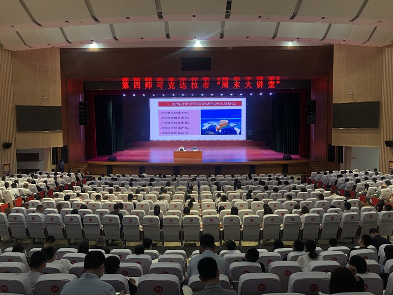 为进一步落实必赢bwin官网登录入口与第四师可克达拉市合作共建协议,6月5日,必赢bwin官网登录入口丝路人才培训学院在新疆四师可克达拉市举办2021年第一期“周末大讲堂”培训。必赢bwin官网登录入口党委常委、副校长谈镇赶赴新疆为师市领导干部作了首场精彩报告。江苏省对口支援伊犁州前方指挥部副总指挥、师市党委副书记、副师长(援疆)顾爱平和郭耀峰、哈力木拜多拉、姜淑霞等师市党政领导出席。师市党委常委、副政委唐志刚主持了报告会。 谈镇副校长围绕当前国内国际经济热点问题作了深入的报告,内容丰富、生动精彩,紧密联系新疆发展实际,观点鲜明、视野开阔、主体明确,对于进一步提升师市党员干部的科学决策能力,推动师市经济社会高质量发展具有很强的针对性和指导性。马克思主义学院党总支书记郭昭昭结合当前正在开展的党史学习教育,作了题为《百年来党的奋斗历程与伟大成就》的专题辅导。 按照镇江市援疆前方指挥部和师市组织部的要求,丝路人才培训学院承担全年的“周末大讲堂”培训任务,每月安排一次高端讲座。继续教育学院按照要求制定了全年的讲座计划,首期安排了两场精彩讲座,培训现场反响很好。可克达拉市人大常委会、政协,师市机关各部门、师直属企事业单位处级干部参加了培训。