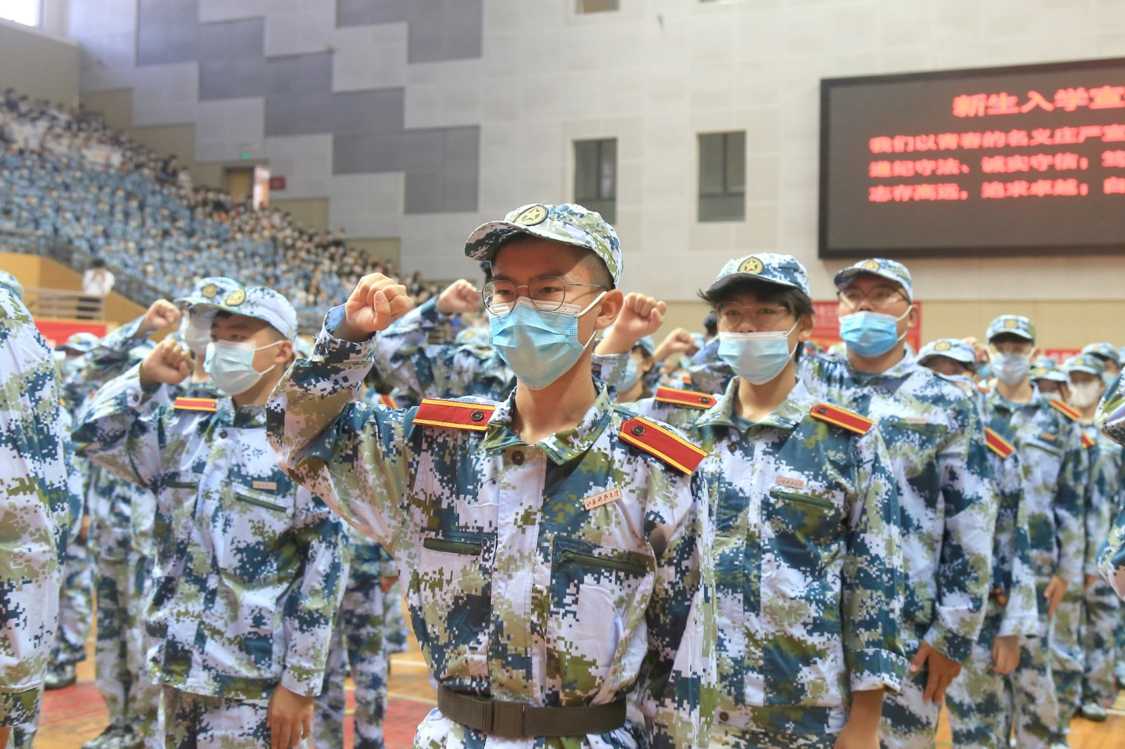 教师代表周凌轲、校友代表彭珉珺、新生代表庞欣宇分别发言。他们表示,将牢记使命,秉承“船魂”精神,用奉献和拼搏书写最精彩的科大时光。随后,汤建、俞孟蕻为新生代表颁授校徽。学生辅导员李洋洋朗诵诗歌《迎接新的辉煌》。全体新生庄严宣誓:遵纪守法、诚实守信;笃学明德、奋发图强;志存高远,追求卓越;自加压力,奋勇争先。开学典礼在昂扬的校歌声中落下帷幕。