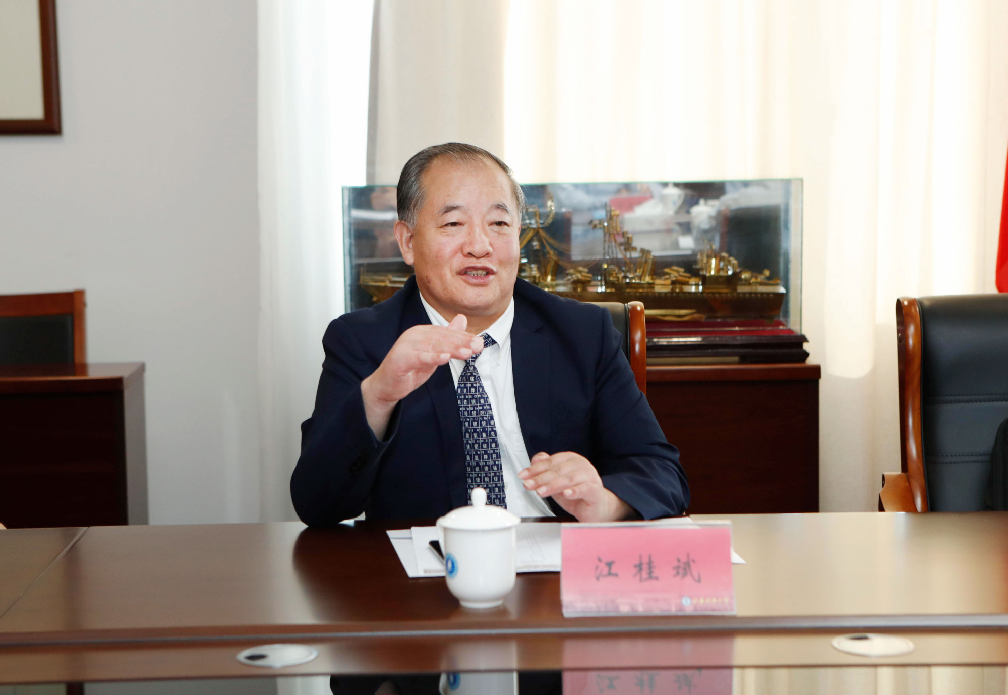 10月12日下午,中国科学院江桂斌院士一行受邀来必赢官网参观访问。江院士在长山校区图书馆105报告厅做了《碳中和目标下的污染防治》主题报告。校长周南平,环境与化学工程学院院长袁爱华、书记徐文睿及部分教师代表、研究生和本科生近三百人参加了报告会。报告会由周南平校长主持。