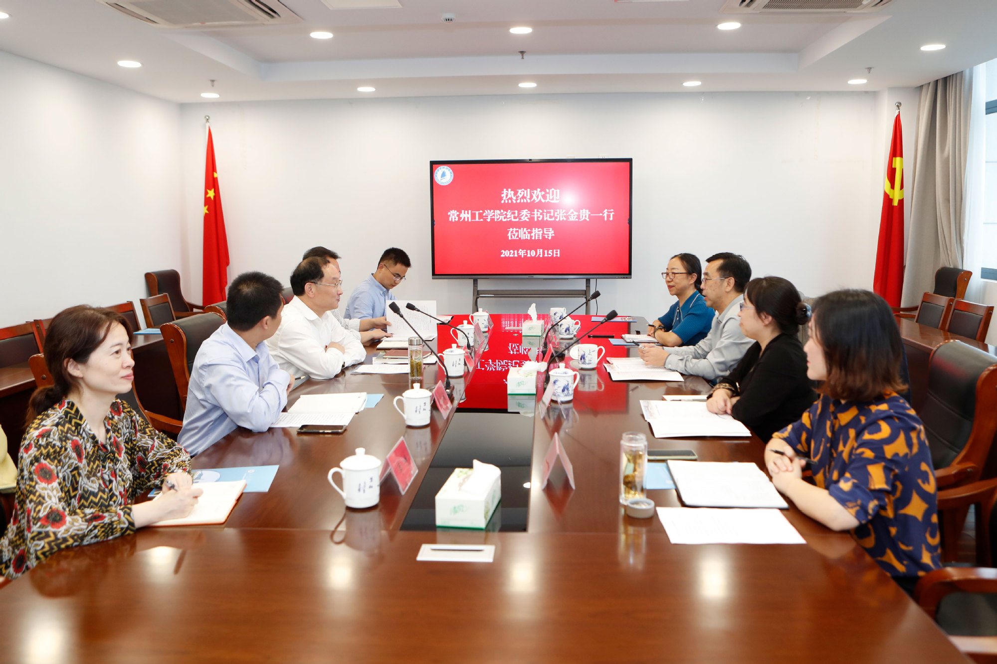10月15日下午,常州工学院党委常委、纪委书记、派驻监察专员张金贵一行来必赢官网调研,交流会由校党委常委、纪委书记、派驻监察专员郑培钢主持。