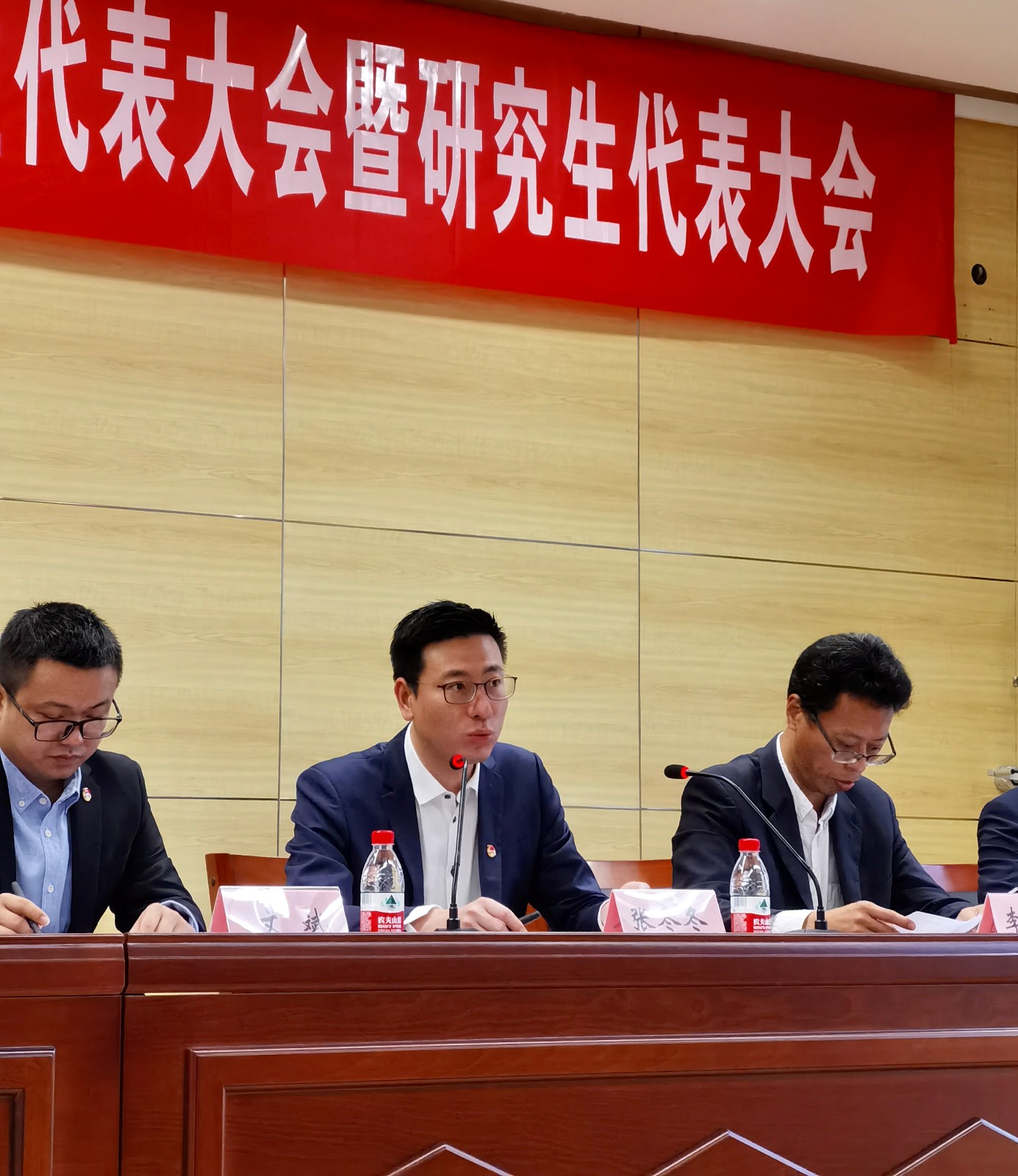 由学院团委副书记文斌对本次大会做出总结发言。他对各位代表所展现出的饱满热情和高度责任感表示了肯定,并向新当选的学生会、研究生会主席团成员表示祝贺。同时,他希望新一届成员能够积极响应党的号召,坚定不移听党话,矢志不渝跟党走,深入贯彻学代会精神,进一步做好学生会工作,“两在两同”建新功,与同学们、学院、学校想在一起、干在一起,风雨同舟、同甘共苦,在学校“十四五”新征程上建新功,用行动来证明自己的能力,以实际成果为学院、为学校增添光彩。