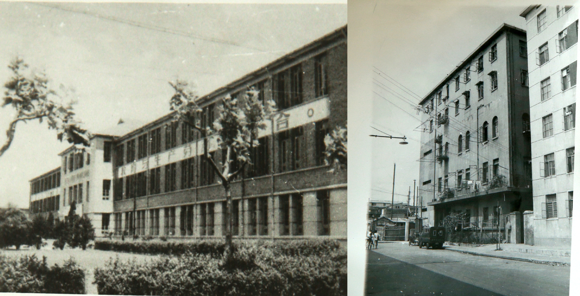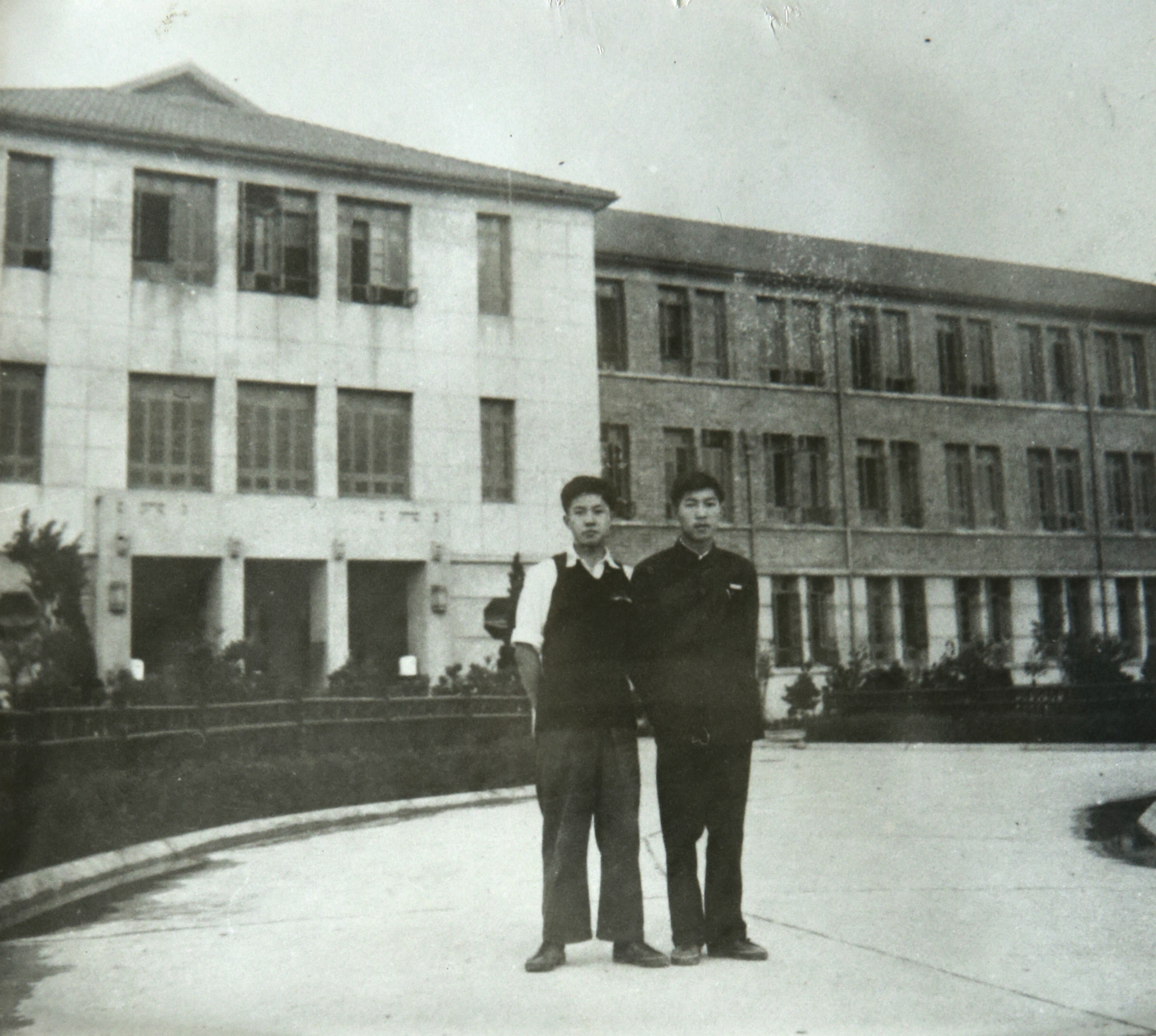 学生在上海船舶工业学校教学大楼前留影