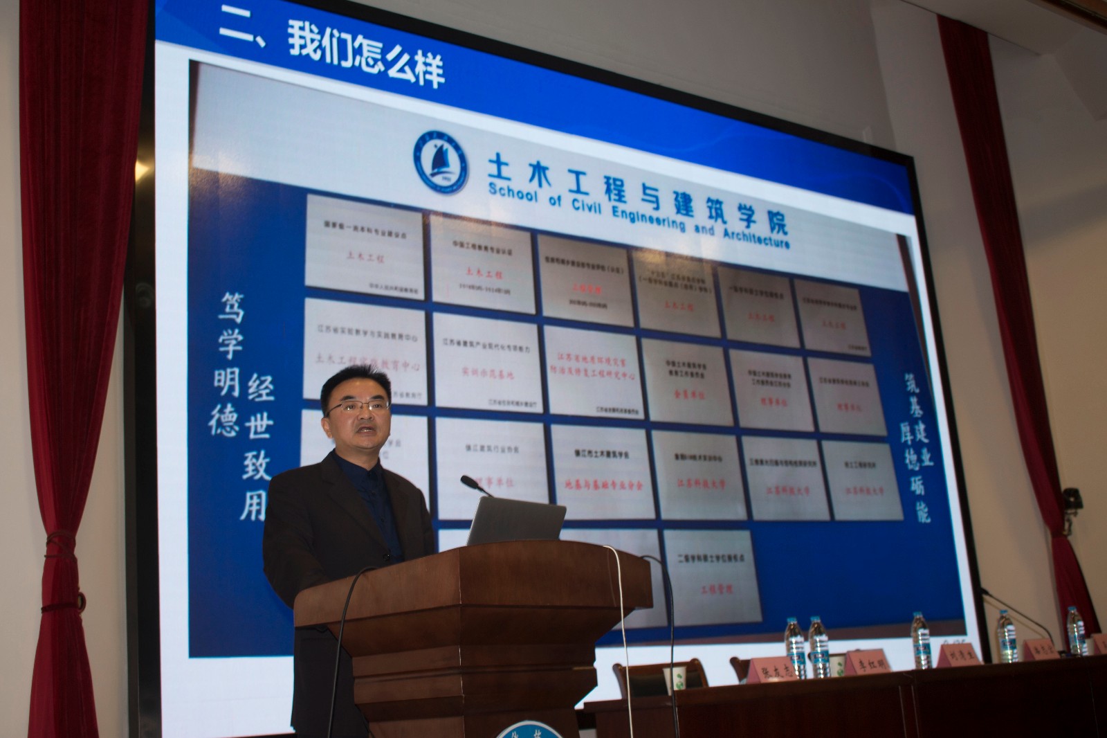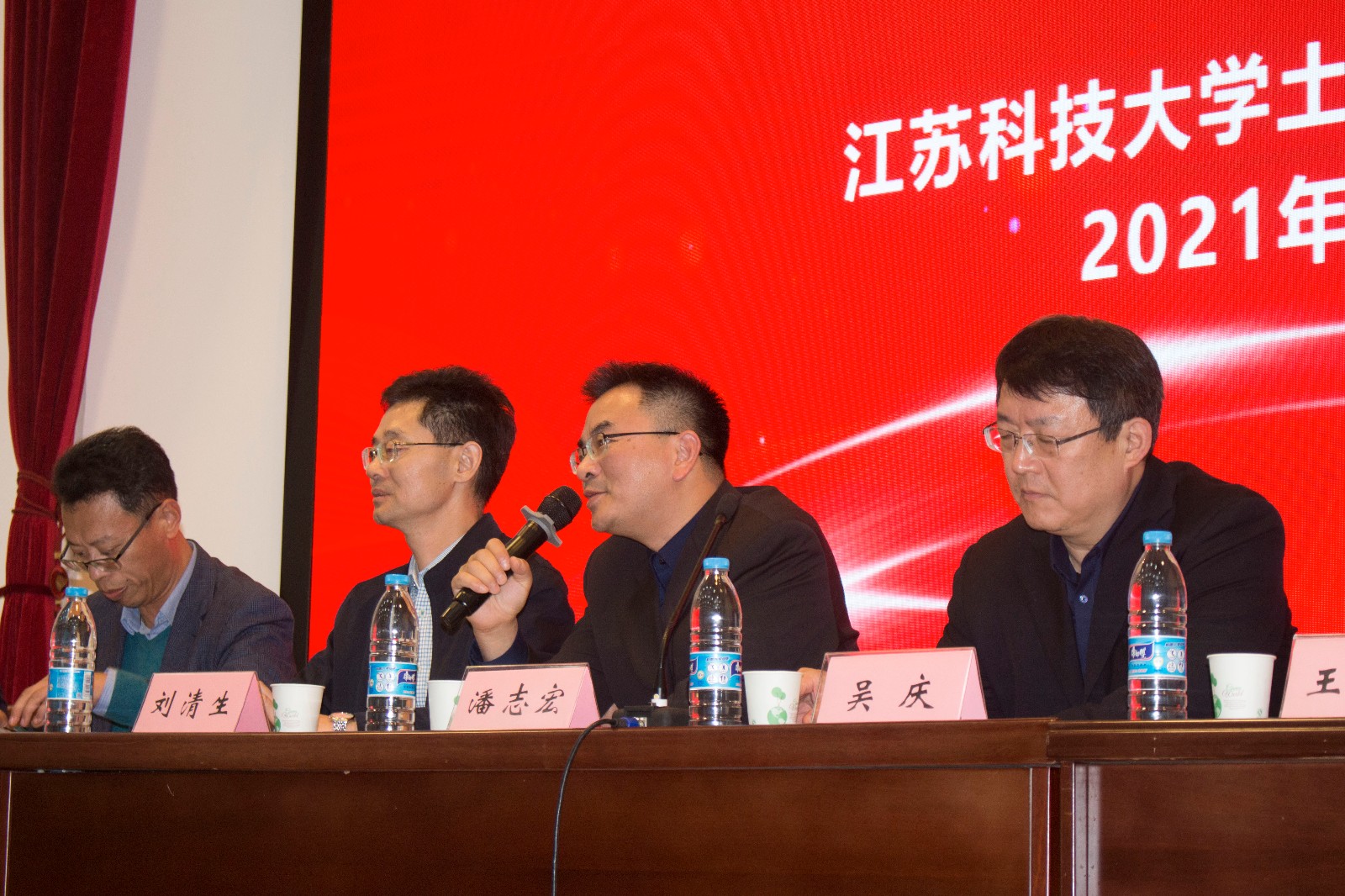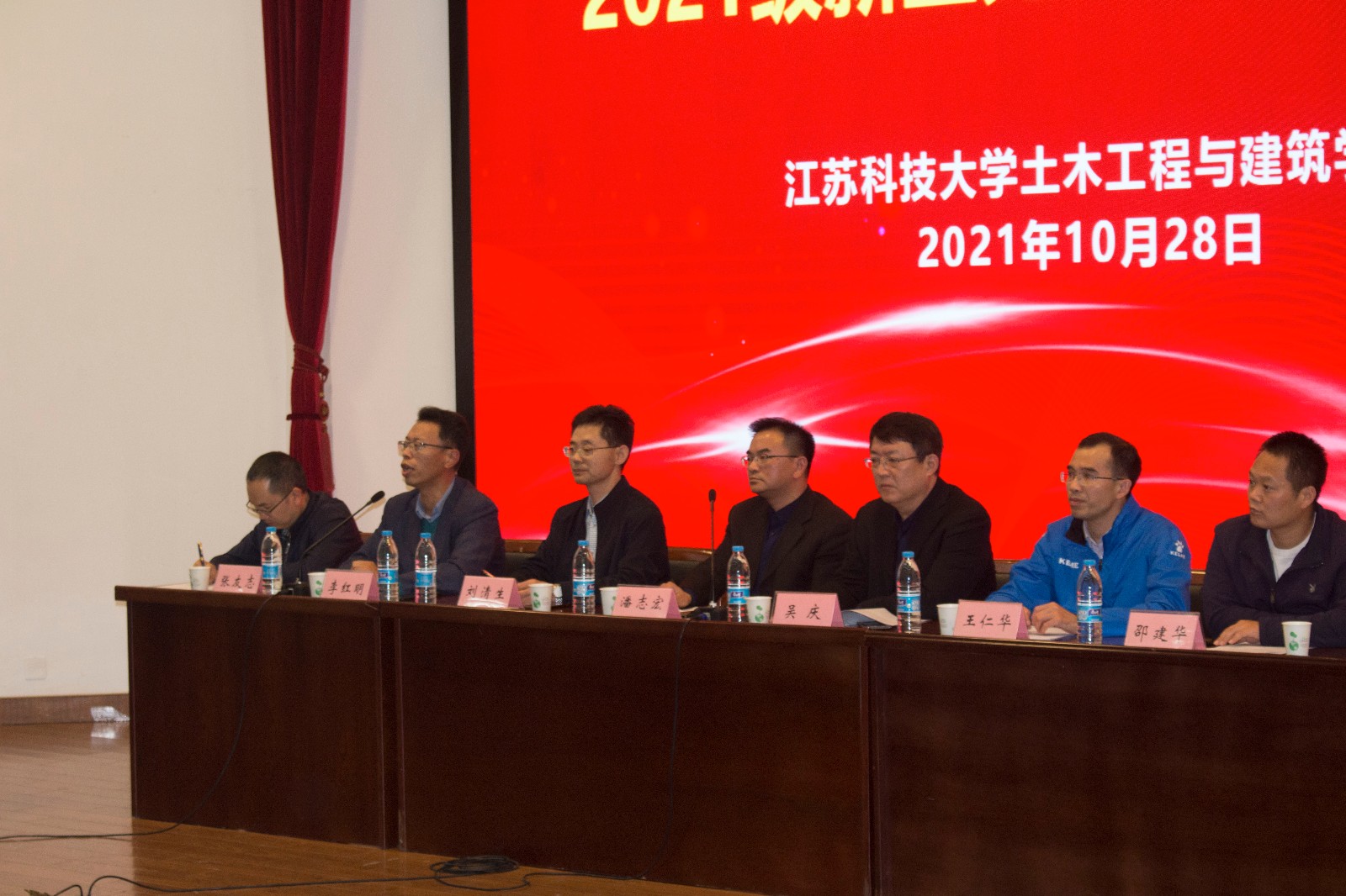 10月28日晚,土木工程与建筑学院2021级新生见面暨专业教育座谈会在梦溪校区演讲厅召开。土建学院院长潘志宏、党委书记刘清生、副院长吴庆、党委副书记李红明、副院长王仁华、土木工程专业负责人邵建华及工程管理专业负责人张友志出席了本次座谈会。座谈会由深蓝学院辅导员王维娟老师主持。