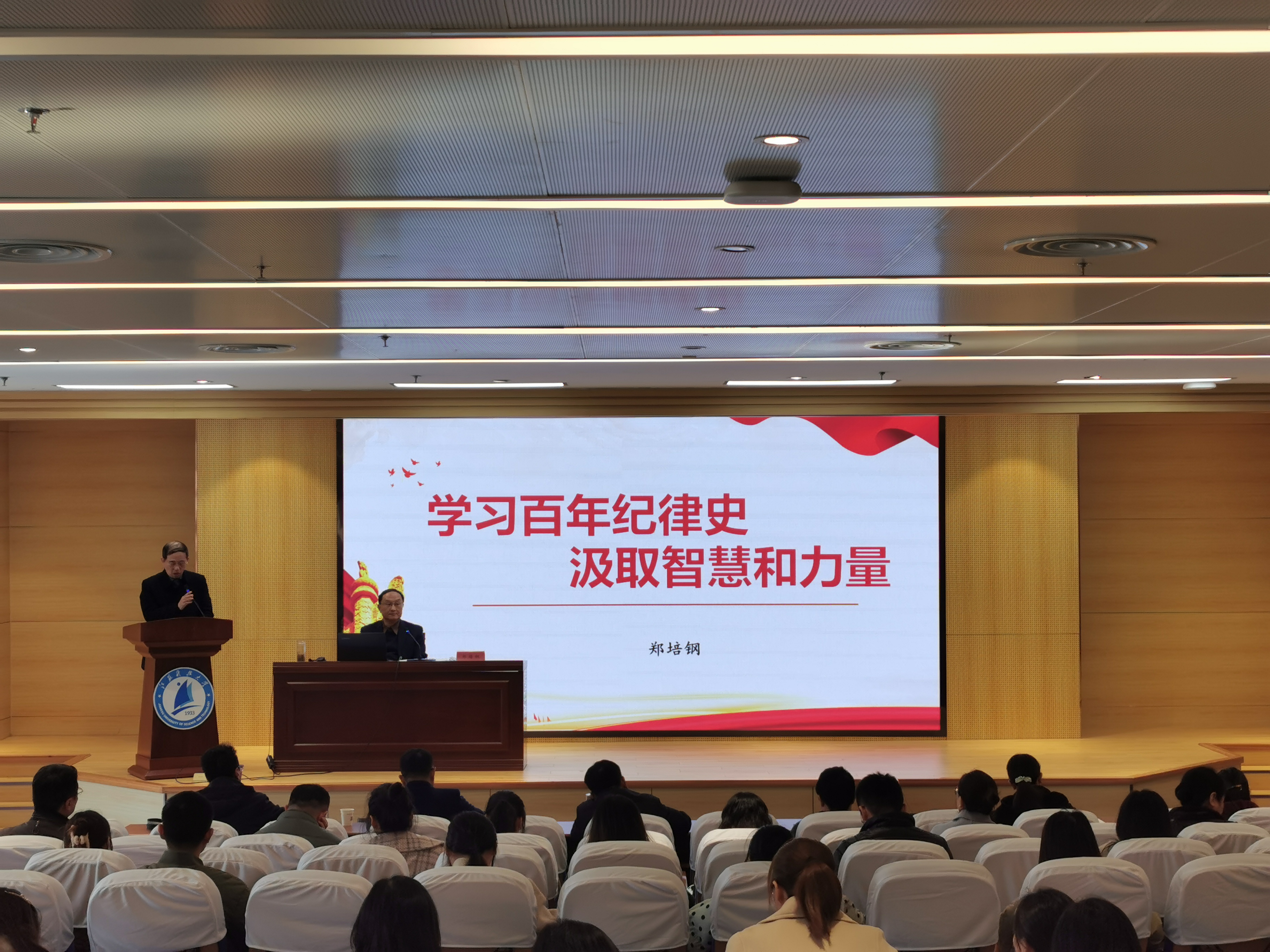 郑培钢的报告以“学习百年纪律史,汲取智慧和力量”为主题,以时间为主线,从民主革命时期、新中国成立后、改革与社会主义现代化时期、党的十八大以来这四个主要时期,讲述了党的纪律建设百年历史,并重点突出四个时期的重要会议、重要事件、重要人物及其影响。