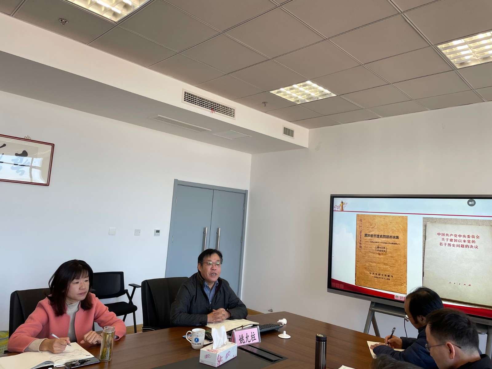 11月25日上午,人文社科学院在文理大楼2046会议室组织开展党委理论中心组学习,特邀学校党史与党建研究所所长、镇江市委理论讲师团成员、马克思主义学院姚允柱教授作题为《学习党的十九届六中全会精神》的报告。学习由学院党委书记李明睿主持,学院党委理论中心组成员、系(教研室)主任、科级干部、辅导员参加学习。