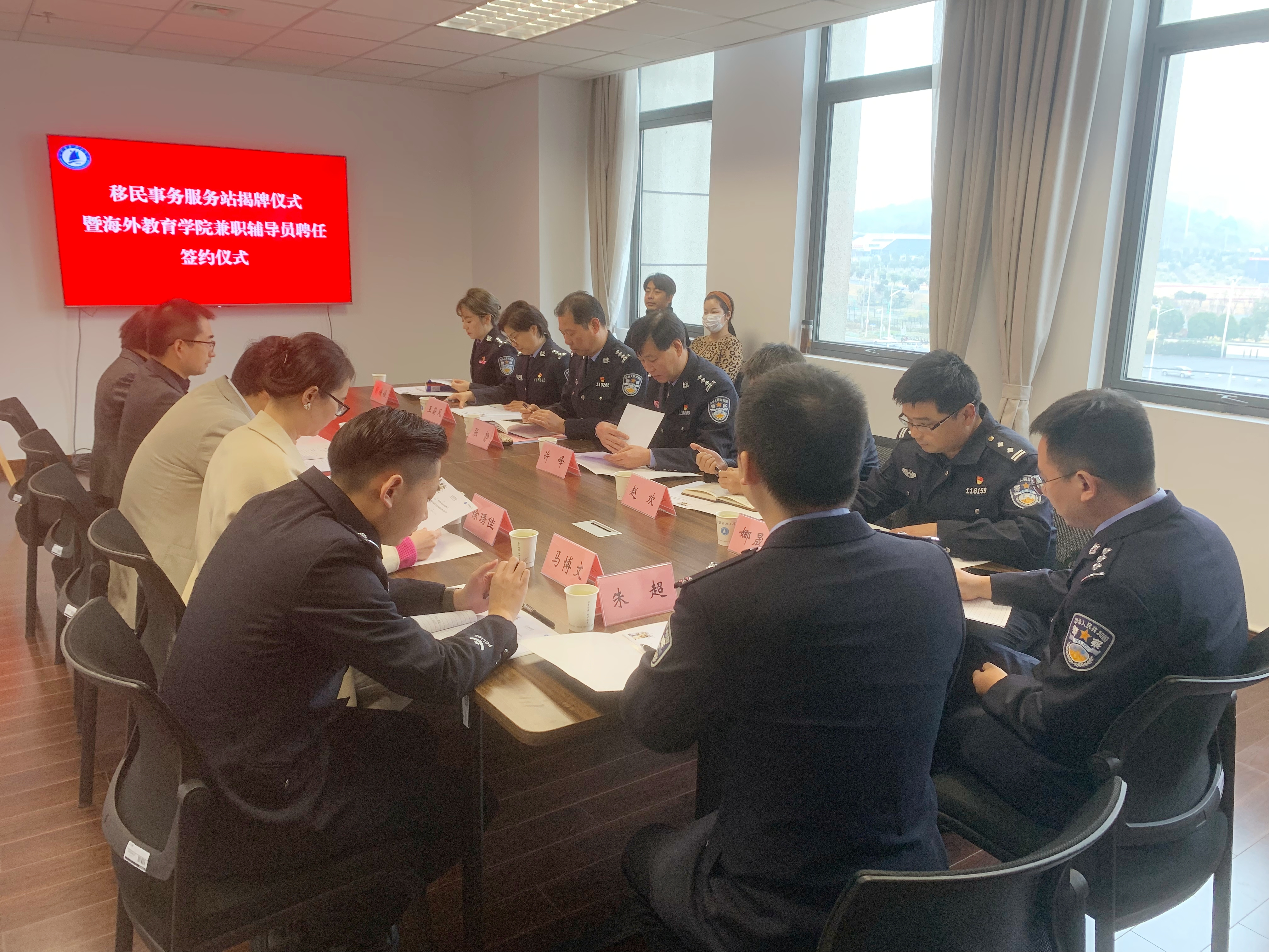 据悉,移民事务服务站成立和校外辅导员聘任协议签署后,警、校双方将定期举办联席会议,出入境民警每周现场办公一次,为留学生提供停居留政策咨询及出入境法律法规宣传和培训,协调指导留学生涉外事件处置,预计将惠及必赢官网40多个国家和地区的600多名留学生。同时,双方将不定期组织留学生开展有民族特色的文体交流活动,帮助留学生融入镇江生活。