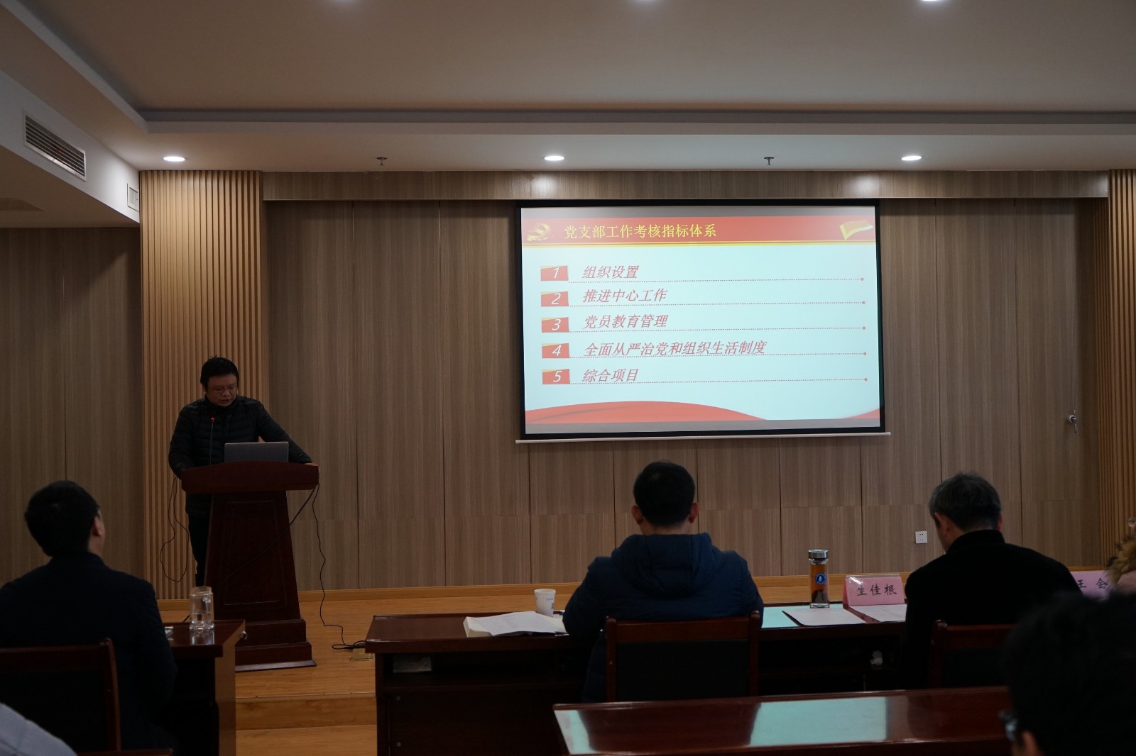 为促进理学院各党支部学习交流,检验学院党建工作成效,提升党建工作质量,12月16日下午,理学院党委召开了2021年度党支部书记现场述职考核评议会。大会特邀校务助理生佳根、党委组织部副部长王召征、组织部组织员王会担任评分嘉宾。会议由理学院党委书记朱金主持,院党委副书记于立东、各党支部书记和支部委员参加大会。