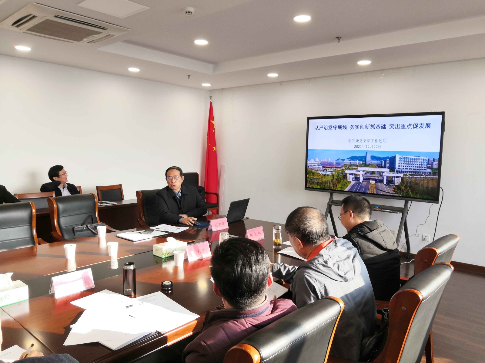 依据抽签顺序,党办、统战部、校办、档案馆党支部,基建处党支部,评估处党支部,工会党支部,总师办、财务处、招标办党支部,宣传部党支部,团委党支部,学生处党支部的书记分别围绕全面从严治党责任制落实情况,党史学习教育开展情况,支部工作特色做法、成效以及存在的突出问题、改进思路举措四个方面进行现场述职,并重点介绍了“我为群众办实事”实践活动、“两在两同”建新功行动开展情况和具体成效。