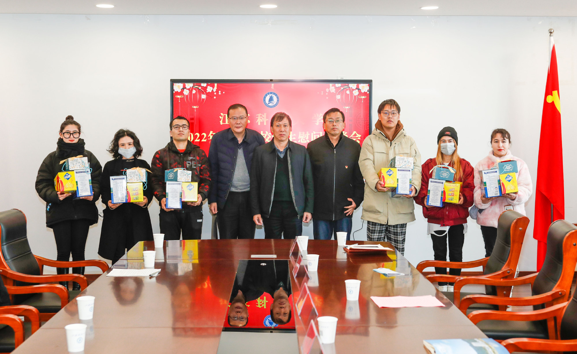 爱心驱寒意,温情暖人心。隆冬岁末的室外严寒凛冽,行政楼8楼会议室里却洋溢着浓浓的暖意。1月26日上午,校党委书记葛世伦,党委常委、副校长汤建,镇江市高校园区建设指挥部副总指挥马士良,高校投资集团副总经理蒋沛看望慰问留校学生,了解留校学生学习生活情况,有针对性地给予指导和帮助,并赠送慰问礼包。