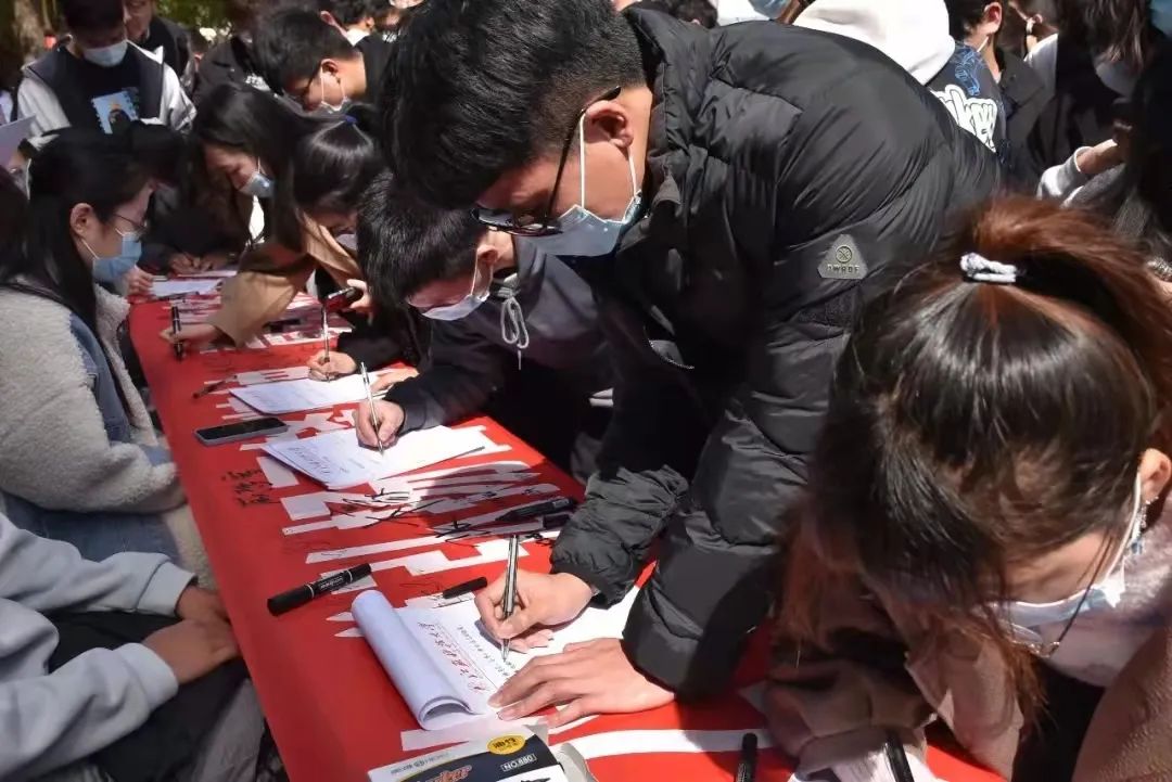 深蓝学院志愿者于梦溪校区东苑食堂门口广场开展“弘扬雷锋精神 青年服务有我”主题签名活动,同学们积极参与,畅谈“雷锋精神”,书写“雷锋故事”。校广播站同步向大家讲述“我身边的雷锋们”,引发热烈反响。