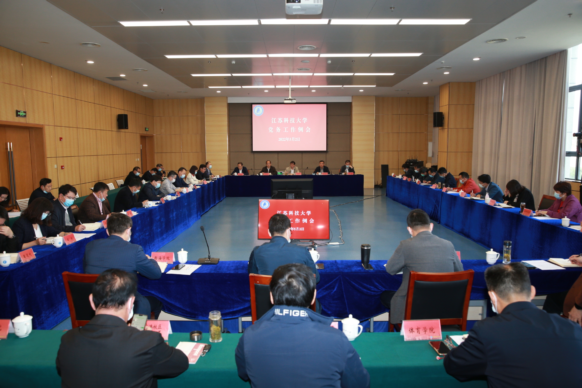 5月2日,学校党委在长山校区图书馆B104报告厅召开5月份党务工作例会,部署党的建设各项工作,要求各单位进一步压紧压实党建工作责任,把党建工作、疫情防控和学校事业发展统筹谋划,同部署、同推进、同落实,不断推进学校各项事业高质量发展。校党委书记葛世伦,党委副书记、副校长景旭文,党委副书记许俊华,党委常委、副校长汤建,党委常委、纪委书记、监察专员郑培钢出席会议,学校党群部门负责人、各二级党组织书记参加会议。会议由景旭文主持。