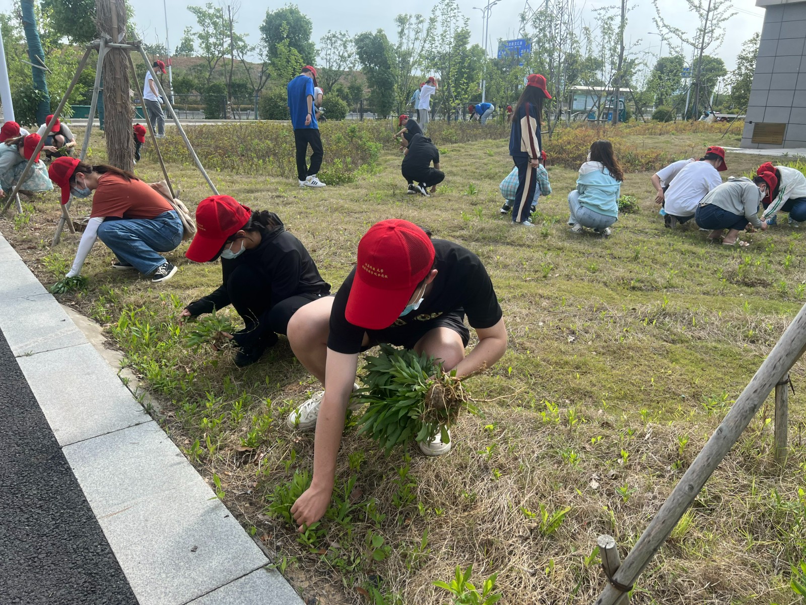 5月31日,经济管理学院分党校组织入党积极分子开展清除加拿大一枝黄花的活动。下午三点半,夏日的骄阳逐渐缓和,几十名师生在校医院西侧的草坪前集合,后勤管理处黄海舟老师通过实物展示和动作示范,向大家讲解了加拿大一枝黄花的清除意义和识别要领,师生们听的非常认真。随后在班主任老师的带领下,大家热情地投入其中。在清除过程中师生们也在积极交流经验技巧,大家的清除工作效率大大提高,不一会每个人手里都有一大把的“战利品”了。在清除大棵黄花的同时也没有放过小棵的,可谓是把加拿大一枝黄花一网打尽。