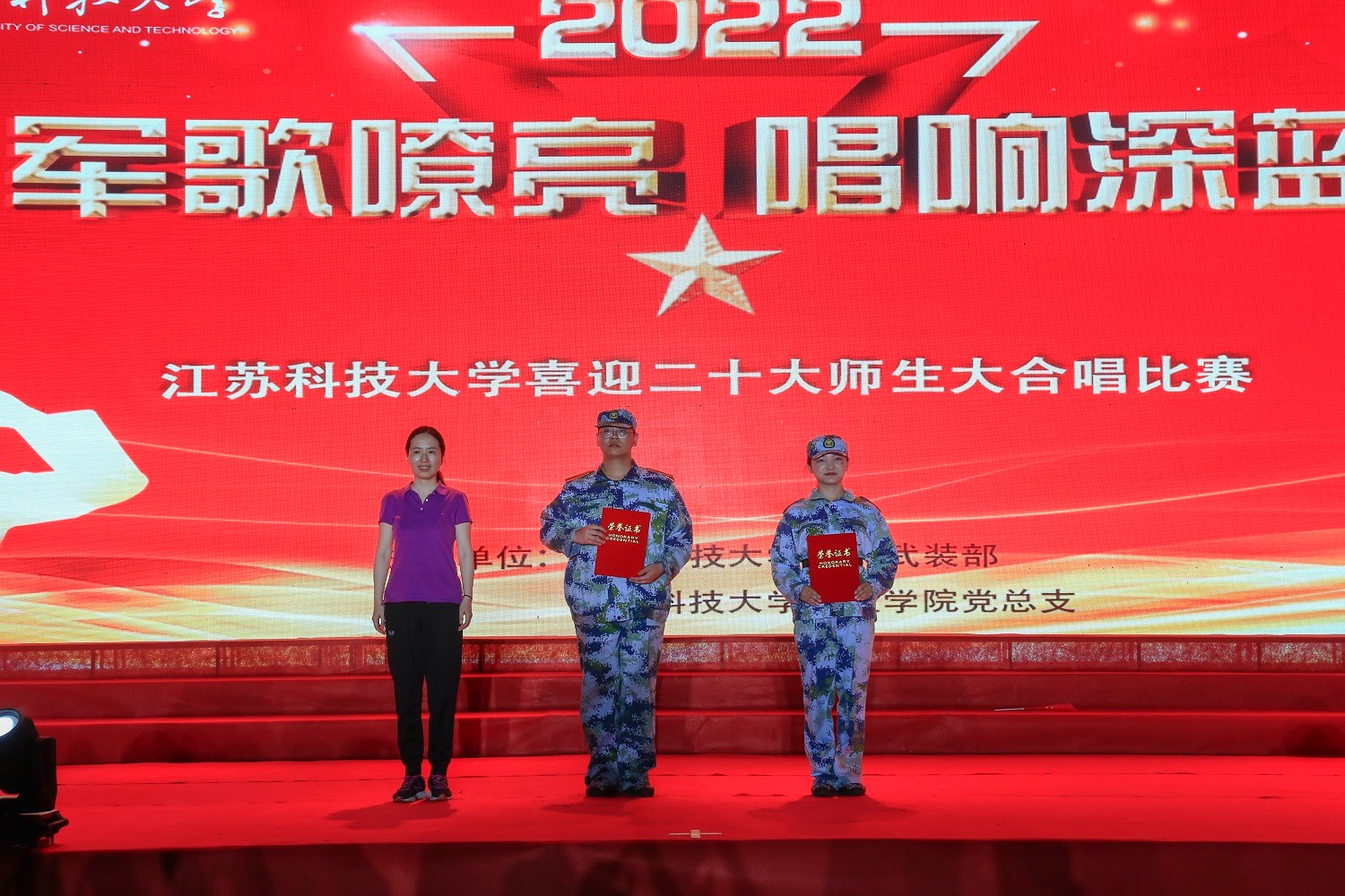晚会最后,在场的全体师生齐唱《必赢bwin官网登录入口校歌》——巍巍船魂永不朽,引导师生既往开来,航向深蓝,向着明天的辉煌。