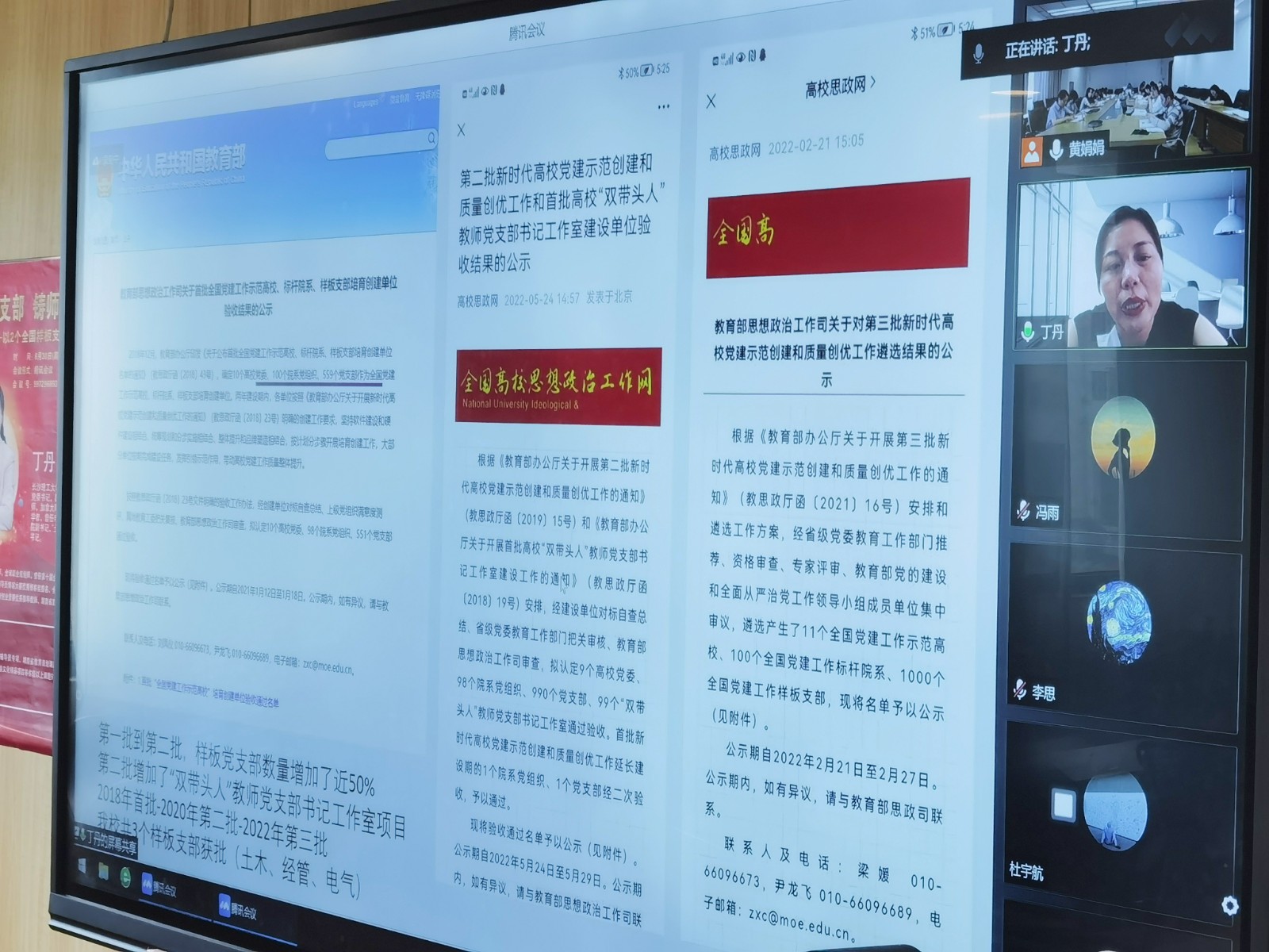 为进一步加强党支部建设,助力党建工作样板支部培育,6月30日下午,经管学院党委邀请长沙理工大学经济与管理学院党委书记丁丹做题为“建样板支部 铸师德之魂”的党建专题报告。受疫情影响,报告会采用线上形式,由经管学院党委副书记杨海涛主持,经管学院全体党支部书记以及兄弟学院部分党支部书记参加。