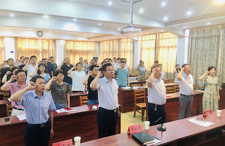 专题党课结束后,葛建华领誓,与会全体党员面向党旗,重温入党誓词。铿锵的宣誓声庄重承诺了不忘初心、牢记使命,始终做让党和群众放心、满意的共产党员。