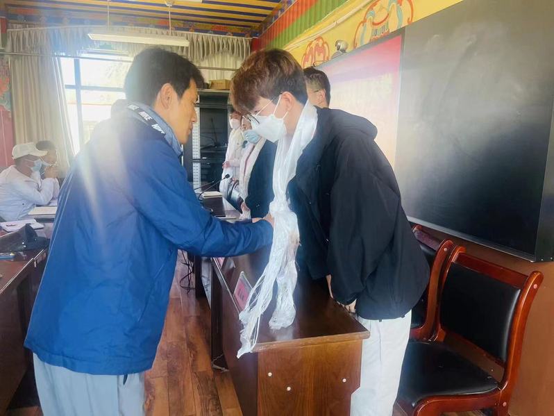 7月4日,德庆中心小学全体教师为欢迎支教团的到来举办了欢迎仪式,堆龙德庆区教育局主任仁增应邀参加了仪式。仁增高度评价支教团不畏困难、爱心支教的公益行为,表示本次支教活动为藏区学生带来的不仅是知识,更激发了孩子们求知的渴望与好奇心,期待孩子们以支教团的大学生为榜样,心存仁爱、奋力拼搏,用知识改变命运。
