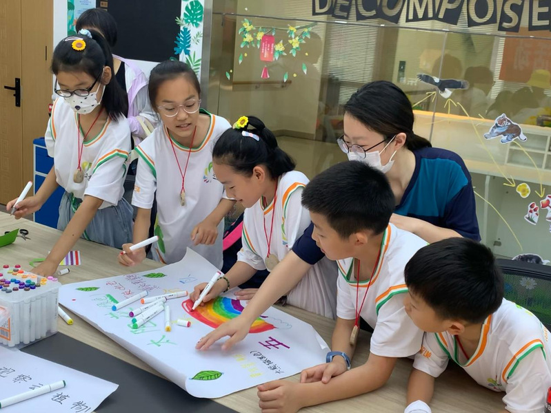 围绕“爱护”的主题品格,志愿者们带领孩子们前往露营基地,开展户外探险,制作树叶贴画。通过前几天的积累学习,孩子们进行了生物多样性的汇报,展示自己的学习成果。