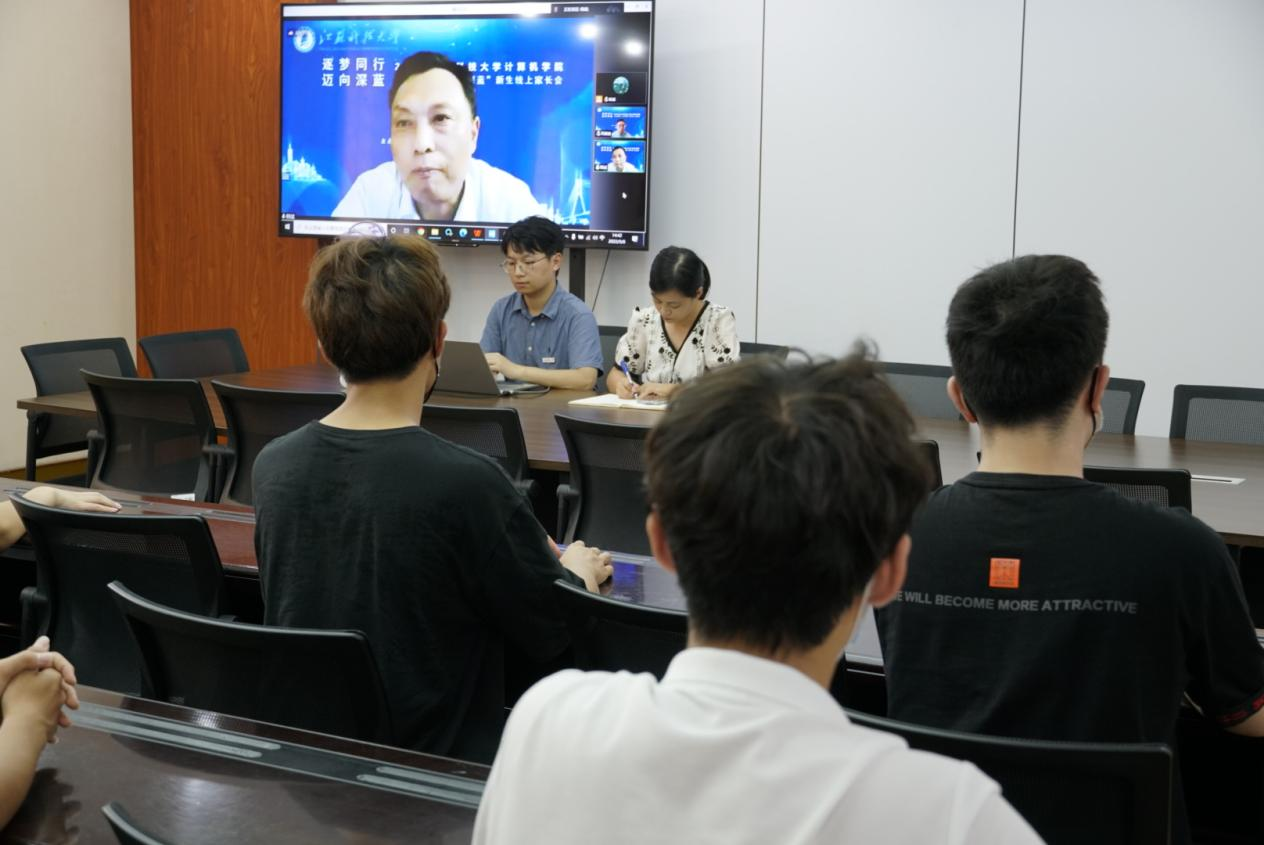 家长会前,各专业学院从自身实际出发,充分准备,个性化设计家长会流程。家长会上,各学院领导对新生家长的参会表示欢迎和感谢,并播放了学校宣传视频,详细介绍了学校的基本概况和办学特色。各学院分管教学的副院长分别从学院的办学历史、学科优势、师资力量、教学科研平台、人才培养特色等方面进行了重点介绍。各学院分管学生工作的副书记从学生管理、安全教育、奖助贷政策、创新创业、生涯规划等方面作详细介绍。各系部主任分别从培养计划、课程设置、培养目标等方面向家长进行了详细的专业解读。各新生辅导员就深蓝学院日常管理、学生培养等方面作了简单介绍。部分学院还邀请高年级优秀学生代表,从专业学习、学科竞赛、社会实践、考级考证、友情爱情等方面进行了分享。最后,各学院现场连线,就专业分流、专业发展、就业前景、保研考研等家长关心的问题进行了详细解答。