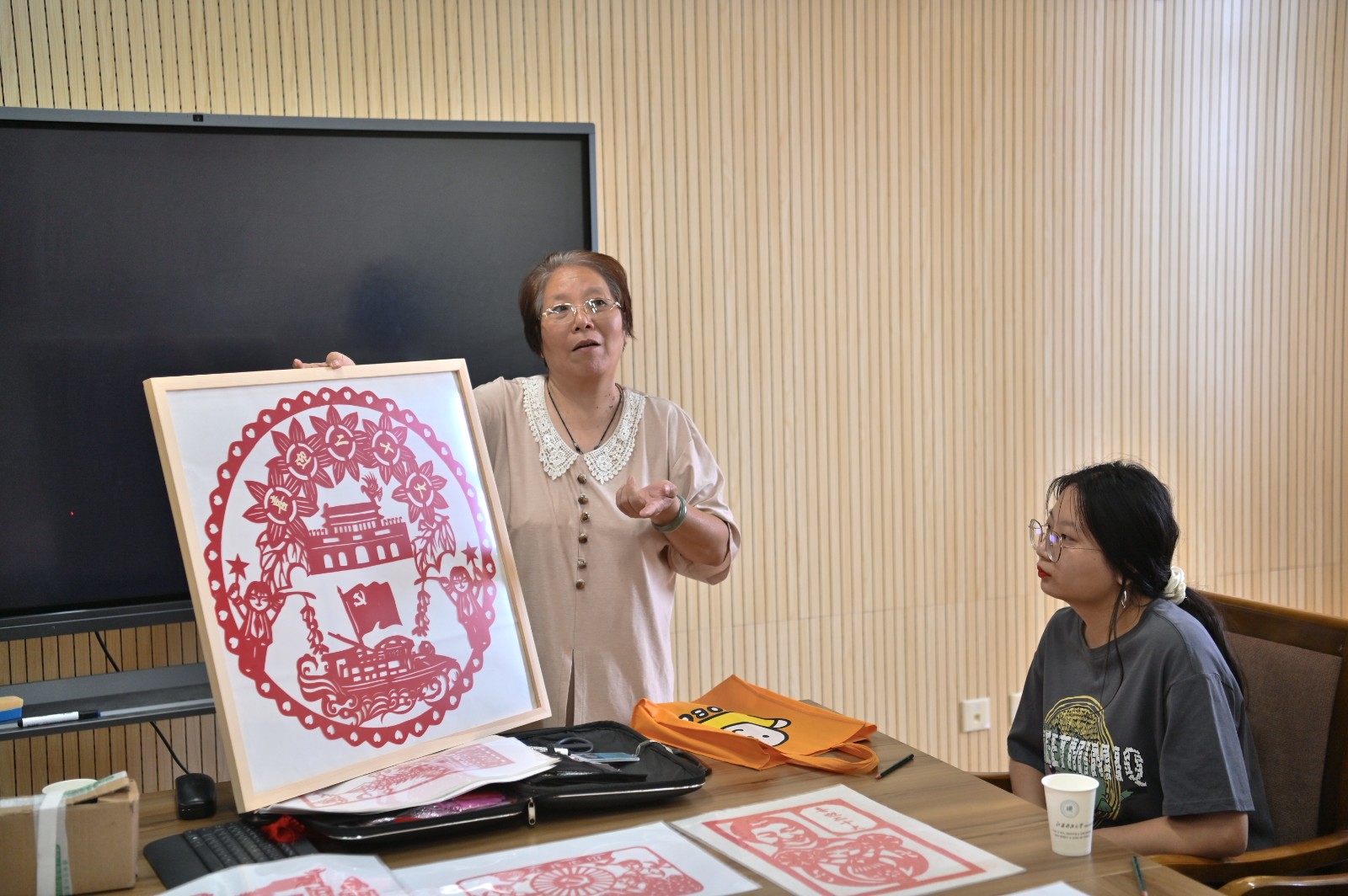 船海学院邀请镇江市非物质文化遗产中心剪纸传承人陈老师讲述剪纸的丰厚底蕴与内涵,演示剪纸技艺过程,并手把手带领同学们体验中国传统剪纸文化。同学们在剪纸过程中纷纷感叹剪纸技艺的神奇,小小的剪刀在薄薄的纸上走过简单的几条线,一张纸就蜕变成为各种栩栩如生的图案,活动的最后,大家手持自己的作品合影留念,向祖国母亲致敬。剪纸活动后,同学们还一起观看《建国大业》电影,回顾革命先辈为建立新中国而付出的血与泪,不忘来时路,开启新征程。