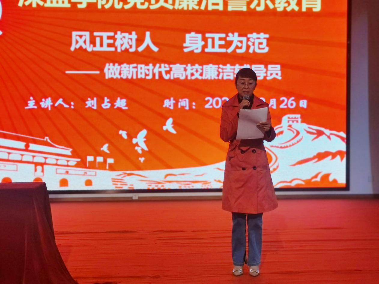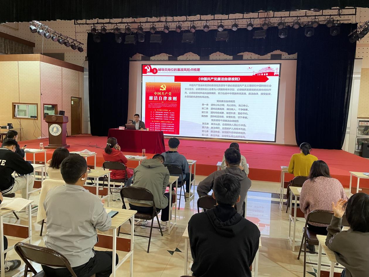 高校辅导员是大学生思想政治教育的骨干力量,辅导员廉洁意识的有无、廉洁品质的高低直接关系到党和国家的未来命运。为加强辅导员的廉政教育,提高辅导员的廉洁意识,10月26日下午,校纪委办公室刘占超主任为深蓝学院全体辅导员做了“风正树人,身正为范——做新时代高校廉洁辅导员”的专题讲座。深蓝学院党总支副书记秦向荣主持,全体辅导员参加了此次培训。