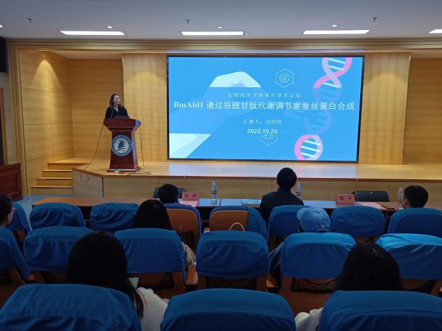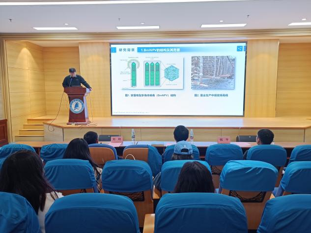论坛以学生汇报、交流提问的形式展开。获得一等奖的硕士研究生苏志浩在报告中指出,他的研究课题“尿酸代谢促进家蚕细胞凋亡应答BmNPV侵染的机制研究”,通过研究尿酸代谢抑制BmNPV增值可能为蚕病防治提供新的思路。今后,他还将继续在家蚕病理学领域开展深入研究,努力践行把论文写在祖国大地的光荣使命。