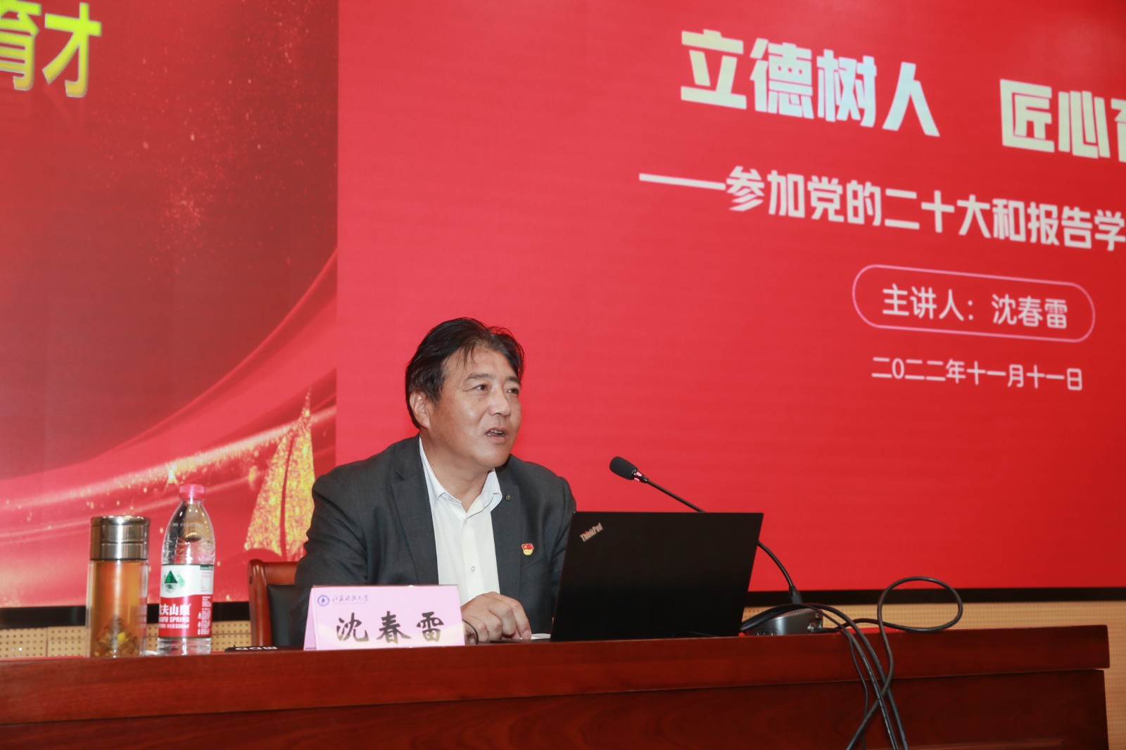 为深入贯彻《中共中央关于认真学习宣传贯彻党的二十大精神的决定》,扎实推进学习贯彻党的二十大精神,切实把全院师生的思想和行动统一到党的二十大精神上来,落实立德树人根本任务,校党委宣传部、土木工程与建筑学院特邀江苏广兴集团有限公司总工程师沈春雷教授做客学校《名家讲坛》,做《立德树人匠心育才》的党的二十大精神学习专题辅导报告。报告会由土木工程与建筑学院党委书记李红明主持。学校宣传部、总师办、财务处、招投标办、国资处、图书馆、土木工程与建筑学院,镇江市高校投资建设发展(集团)有限公司、镇江市华普工程建设监理责任有限公司等部门的党员和入党积极分子代表到会聆听了报告。