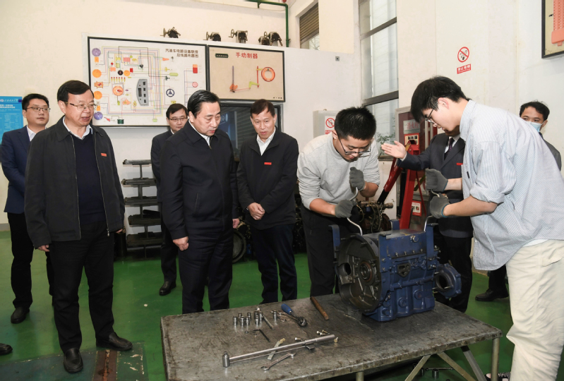 马明龙书记一行首先来到能源与动力学院重装实验楼,参观了船舱综合实训实验室、柴油机拆装实训室、发动机性能测试实验室、轮机综合机舱实验室和振动噪声实验室,观看了氢能源船舶演示、舰船风机盘管实验、消声减震实验等项目,对必赢官网积极承担和参与国家重大科研项目的研发,在突破“卡脖子”技术问题等方面所作的努力予以肯定。马书记与在场师生开展互动交流,勉励学生为中国式现代化贡献青春力量。