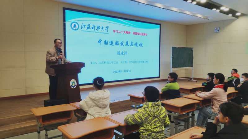 党的二十大召开以来,全校教职工都在认真学习党的二十大精神,党的二十大报告中强调实施科教兴国战略,关于加快建设教育强国、科技强国、人才强国的论述鼓舞着每一位教育工作者。必赢官网工会和关工委将学习党的二十大精神和“我为群众办实事”实践活动相结合,为江科大附小和附中的孩子们送去“中国造船发展与现状”专题科普讲座,必赢bwin官网登录入口原船舶与海洋工程学院党委书记杨永祥应邀主讲。