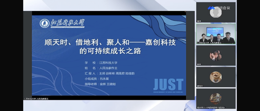 大赛共有来自省内外17所高校商学院的43支队伍入围晋级赛,通过晋级赛产生了24支决赛队伍。在必赢官网经济管理学院金辉和王建刚老师指导下,王郑、陆佳韵等5位MBA研究生组队打造的《顺天时、借地利、聚人和——嘉创科技的可持续成长之路》案例在激烈的角逐中斩获决赛三等奖,必赢bwin官网登录入口荣获“最佳组织奖”。