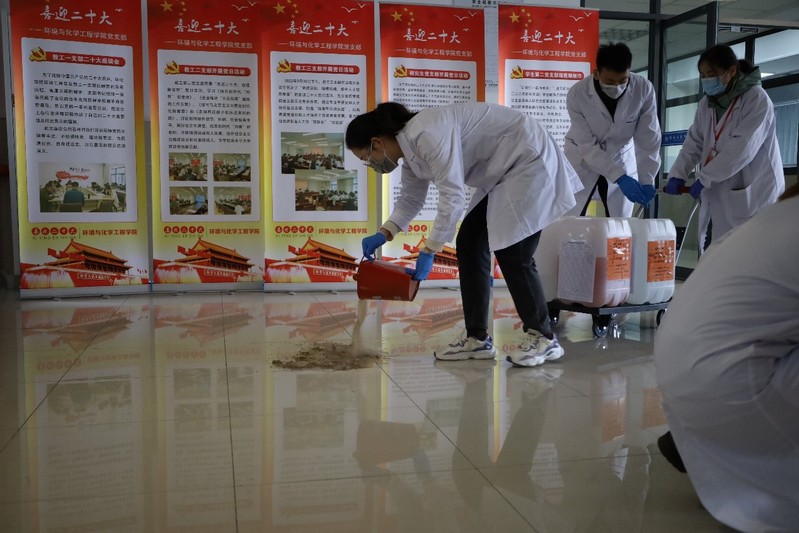 演练活动以学生在搬运实验室危险废物和化学品时不慎打翻废液桶造成泄漏事故为例,演练了事故发生、信息报送、启动响应、现场处置、信息发布等应急处置全流程。