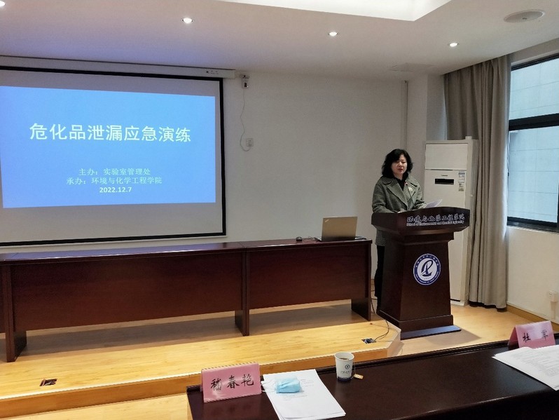 环化学院副院长王新刚在演练前进行了《危险化学品泄漏事故应急预案》的解读。环化学院院长陈立庄在演练后作了演练总结,并介绍了危险化学品使用过程中的常见突发事件及应急处置方法。