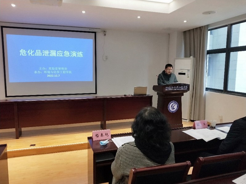 12月7日下午,学校在环境与化学工程学院开展危险化学品泄漏应急演练。演练活动由实验室管理处主办,环境与化学工程学院承办,采用现场演练+直播观摩的方式进行,环境与化学工程学院师生、安全保卫处、实验室管理处、后勤管理处领导、校医院医护人员参演。副校长嵇春艳出席并讲话。材料、环化、生物、粮食、能动、理学院等涉化学院院长、分管院长、实验室主任、一级安全员、危废管理员、学生代表、相关职能部门负责人观摩了演练。演练活动由实验室管理处处长沈勇主持。