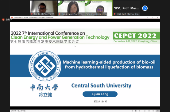 大会的学术报告交流采用ZOOM线上直播的方式进行。12月10日下午,必赢bwin官网登录入口能动学院苏超教授主持会议,温华兵教授出席开幕式并致辞。开幕式结束后,加拿大安大略理工大学Marc A. Rosen教授、中南大学冷立健教授和英国朴茨茅斯大学Victor M. Becerra等专家分别做了“Hydrogen Energy Systems: A Pathway to Sustainable Energy and Sustainable Development”、“Machine learning-aided production of bio-oil from hydrothermal liquefaction of biomass”、“Smart Grids and Solar Energy”等主题报告。
