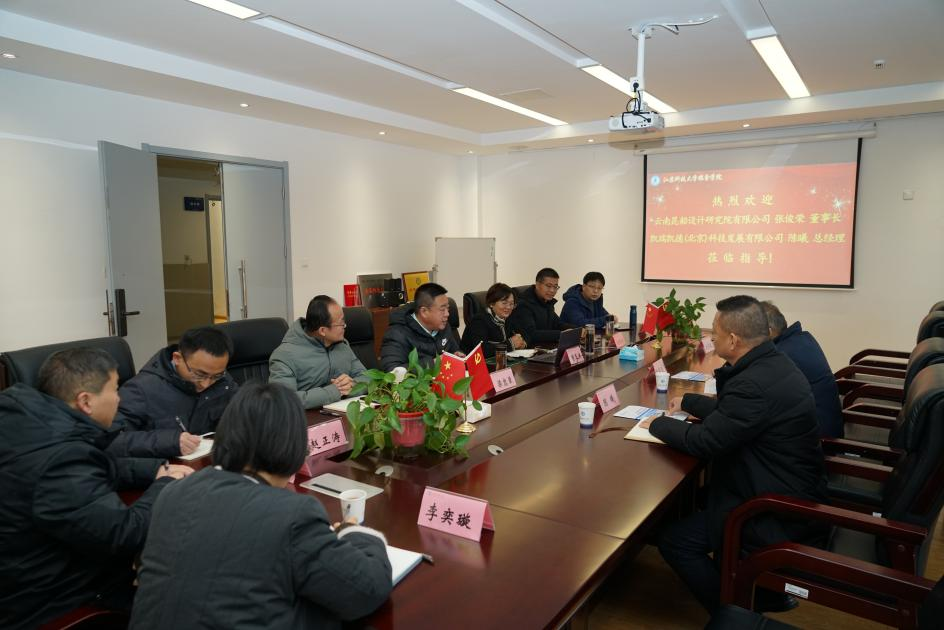 2月23日上午,云南昆船设计研究院有限公司董事长张俊荣、凯瑞凯德(北京)科技发展有限公司总经理陈曦一行来必赢官网洽谈校企合作事宜。粮食学院党总支书记梁忠臣、院长鲁玉杰、副院长张晓伟以及系主任、部分教授等参加座谈。