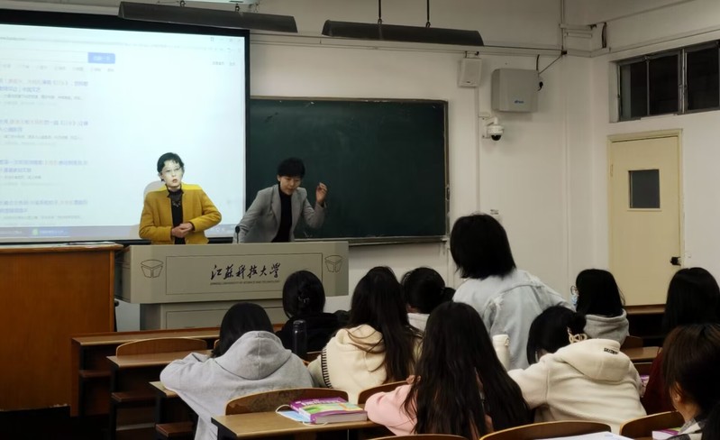 “镇江城里有三怪:面锅里面煮锅盖,镇江肴肉不当菜,镇江香醋摆不坏…….”耳熟能详的民谣里蕴含着镇江这座历史文化名城丰厚的人文风情,从天南海北聚集到镇江的学子们在英语课堂里领略到这座城市的文化底蕴。“Do you know three specialties in Zhenjiang? The pot cover noodle,salted pork in Jelly and Zhenjiang vinegar ...”刘燕平研究员和王欢博士分别用汉语和英语绘声绘色地描述着历史文化名城丰厚的人文风情,聆听的同学们更是饶有兴趣地认真听讲,不时地做着笔记。在王欢博士的指导下,同学们把对第二故乡镇江的认知融入到丰富的语言表达中,知而会其意,译则不失其意。听完这堂中西合璧的民俗课程后,外院学子纷纷表示课堂氛围活泼生动、信息量大,深感受益匪浅。