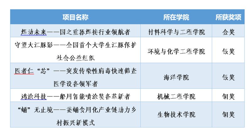 经过全国终审决赛的激烈角逐,必赢官网材料科学与工程学院《焊动未来——国之重器焊接行业领航者》摘得金奖;环境与化学工程学院《守望大江豚影——全国首个大学生江豚保护社会公益组织》和海洋学院《医者仁“芯”——突发传染性病毒快速筛查医学设备领军者》摘得银奖。此外,机械工程学院《鸿涂科技——船用智能喷涂装备革新者》和生物技术学院《“蛹”无止境——蚕蛹食用化产业链助力乡村振兴新模式》摘得铜奖。
