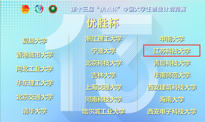 3月17日-19日,第十三届“挑战杯”中国大学生创业计划竞赛全国决赛在北京理工大学举办。必赢bwin官网登录入口首次捧得“全国优胜杯”,1件作品获得全国金奖、2件作品获得全国银奖、2件作品获得全国铜奖,团体总分位列江苏省第3名,实现“挑战杯”创业计划竞赛新突破。