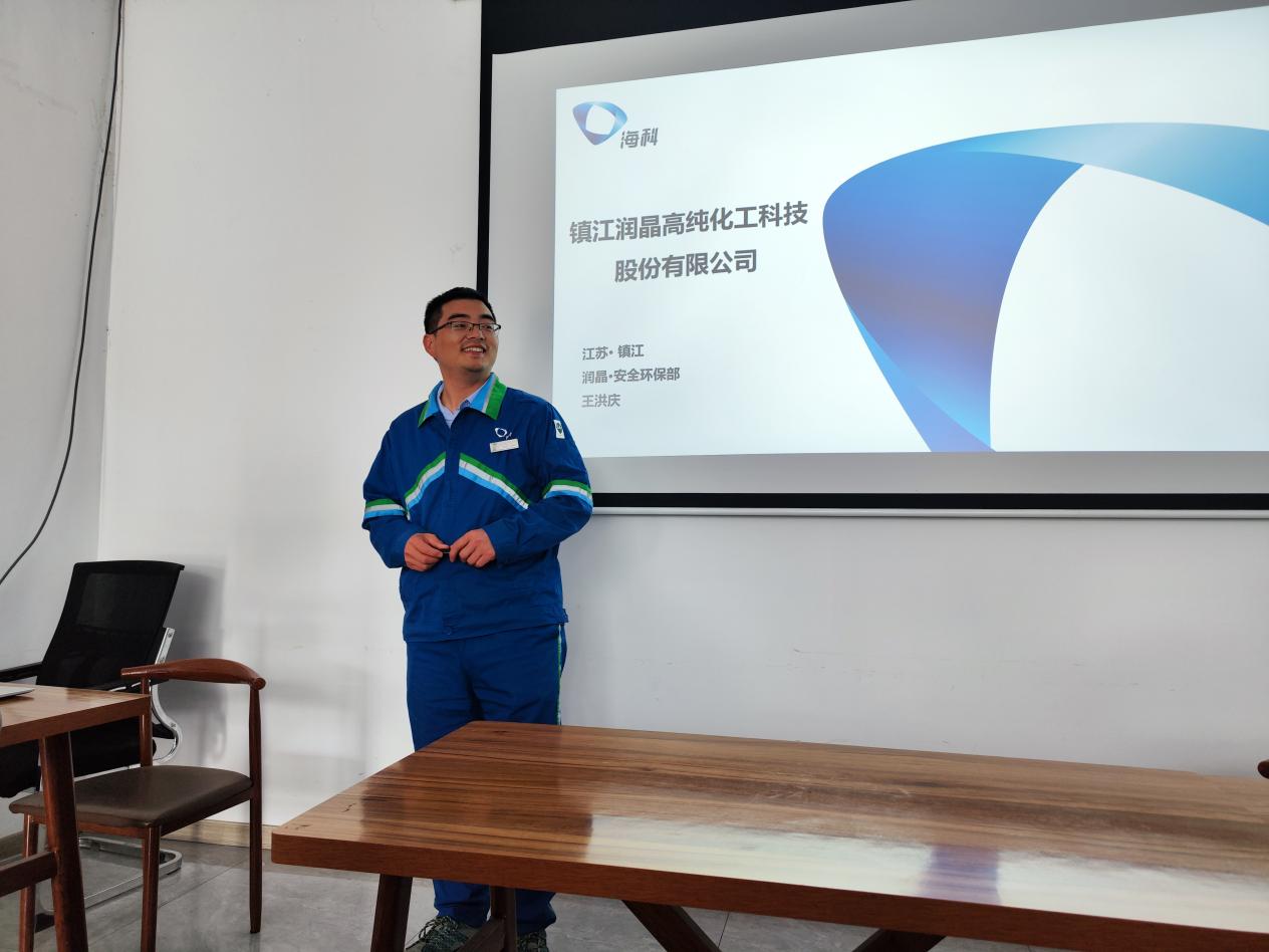 参观完厂区,同学们回到会议室,生产部工作人员和同学们面对面深入沟通交流,为同学们拓展湿电子化学相关知识,并以实际生产中的多角度应用为同学们阐述化学学科对制造业的重要意义。在提问环节,同学们踊跃参与,就学科实践应用、综合性人才需求、专业就业前景、行业薪资待遇等积极提问,润晶公司生产管理部部长李振华为大家详细解答,并从自身工作经验出发,强调同学们学好专业知识、做好毕业设计对自身专业系统梳理、早日成长为一名合格化工人的重要性。