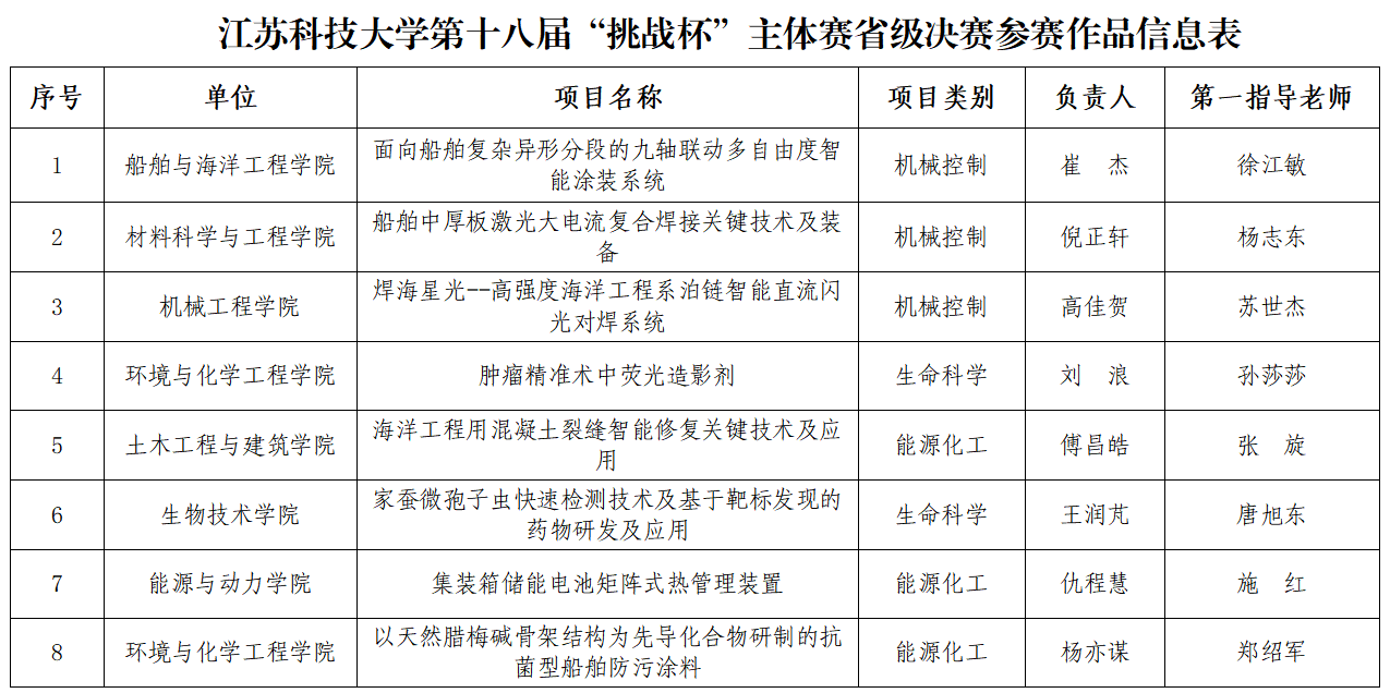 近日,必赢官网开展第十八届“挑战杯”全国大学生课外学术科技作品竞赛备赛指导会,学校党委书记葛世伦以及相关学院院长书记等现场指导。据悉,本届“挑战杯”共有主体赛、“揭榜挂帅”专项赛、“黑科技”专项赛、红色专项赛4个赛道,其中主体赛、“黑科技”专项赛两个赛道江苏省赛决赛将于5月26日-28日在常州大学举办,必赢官网主体赛8个项目、“黑科技”专项赛6个项目共14个项目入围省赛决赛。