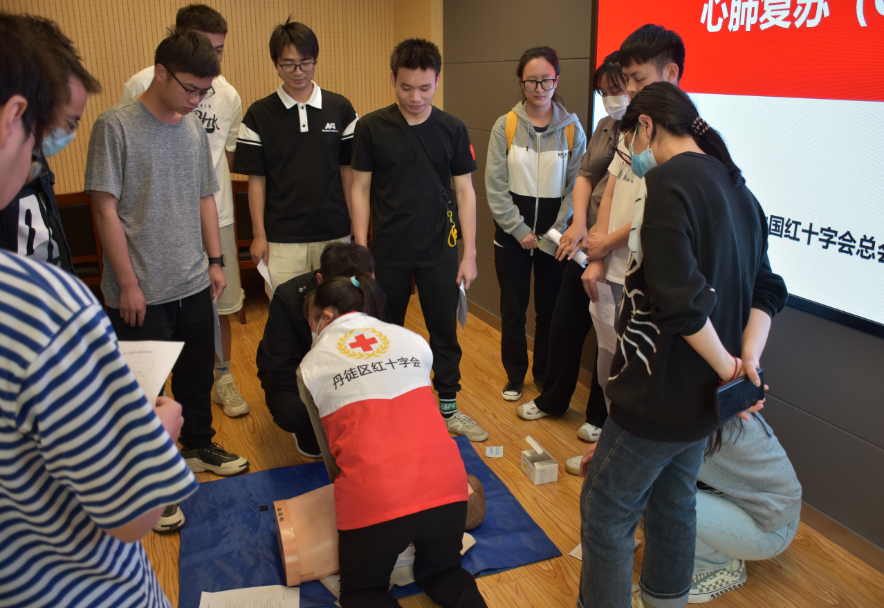 授课老师从心搏骤停的定义及表现出发,讲解心肺复苏的重要性,采用理论知识与实地操作相结合的方式,利用人体模型进行现场示范,每一个关键步骤都给同学们强调操作要点,精准位置,以及规范动作,现场同学们相互探讨,认真演练,老师们给予专业性指导纠正,讲述了在何种情况下心肺复苏的实施能够产生效果,及停止的条件。张淼老师表示,自动体外除颤器的使用对提高心搏骤停患者的生存机会起到关键性作用,让同学们掌握体外自动除颤器的使用注意事项和具体操作步骤,能够在面临意外突发情况时,提供及时有效的救助。