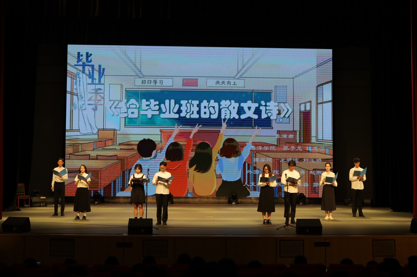 又是一年花草香,又是一年离别意。6月12日晚,海洋学院、理学院、外国语学院、人文社科学院在长山校区船苑剧场联合举办“季忆留夏歌未央,梦启韶华绘新章”四院联合欢送毕业生晚会。校团委副书记张一飞,四个学院的领导、系部主任、班主任、辅导员与600余名毕业生共同观看了晚会。