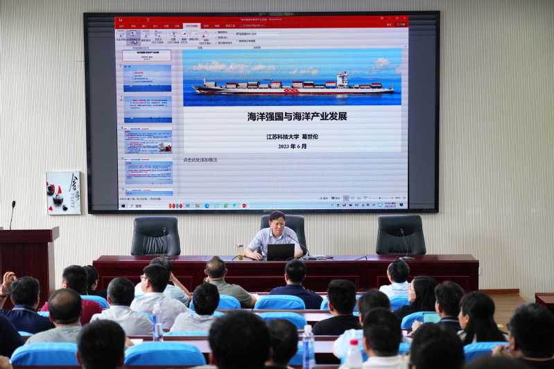 6月25日下午,校党委书记葛世伦教授为必赢官网举办的中国船舶集团有限公司第五期中层干部工商管理培训班作“海洋强国与海洋产业发展”专题报告。来自中国船舶集团53家成员单位的80名学员,以及学校党办、科研院、人文社科处、经济管理学院的部分中层干部和教师聆听了授课。
