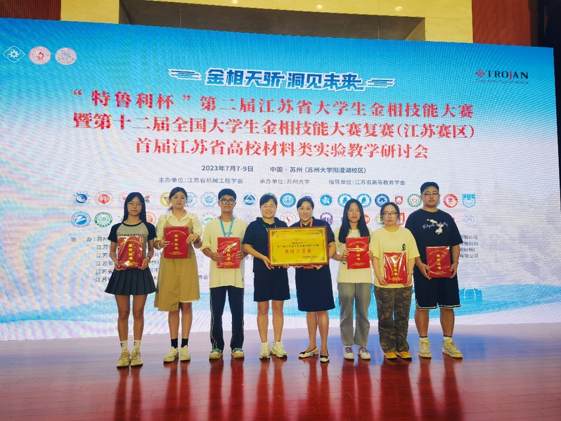 7月7日至9日,由江苏省机械工程学会主办、苏州大学承办的“特鲁利杯”第二届江苏省大学生金相技能大赛暨第十二届全国大学生金相技能大赛复赛(江苏赛区)在苏州大学成功举办。来自全省42所高校的252名选手参加了比赛。材料学院农芊纤同学荣获一等奖,甘婵、张舒威及郑军涵同学荣获二等奖,张茗言和郑旺同学荣获三等奖,材料学院获得团体二等奖,三位教师获得优秀指导教师奖。