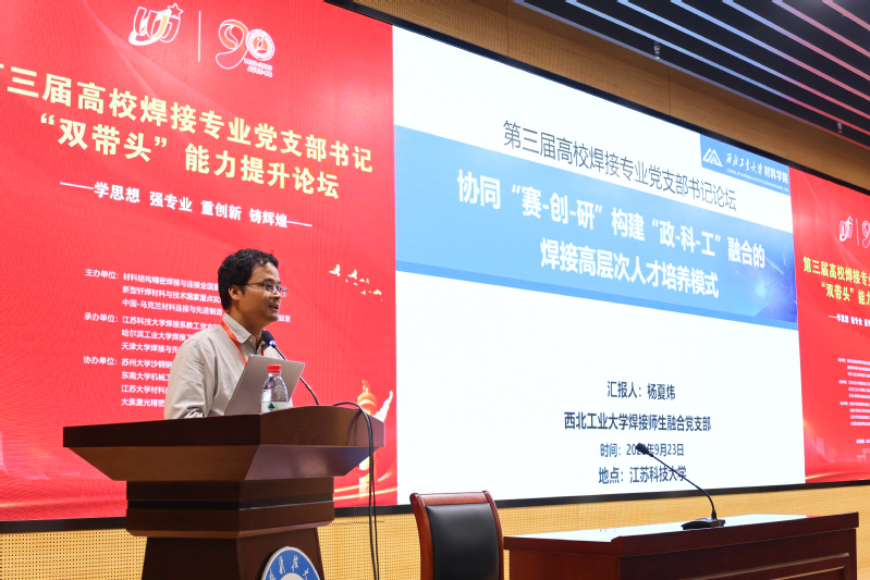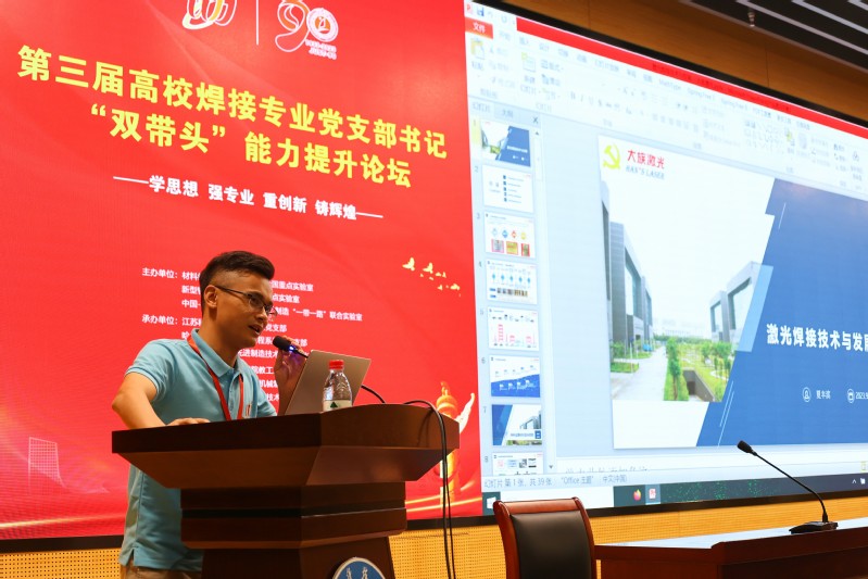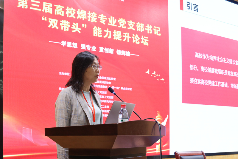 下午,镇江市委党校马克思主义理论教研室主任周秋琴教授以“坚持不懈用习近平新时代中国特色社会主义思想凝心铸魂”为题,围绕如何学习贯彻习近平新时代中国特色社会主义思想进行了系统深入的解读。江苏大学材料学院党委书记杨娟以《学思践悟党的二十大,“一轴三翼”谱新篇》为题,就夯实基层党建和焊接专业发展有机融合、互促提升,分享了江苏大学在党建方面取得的成效。必赢bwin官网登录入口材料学院党委书记李瑞峰介绍了材料学院通过五个引领三创联动,构建大党建联盟格局,打造亮点突出、特色鲜明的党建品牌,推出“五型党支部建设”,构建“头雁效应”三全育人体系,党员先锋突破多项焊接关键技术,党建引领专业发展的情况。西北工业大学焊接师生融合党支部书记杨夏炜以《协同“赛-创-研”,构建“政-科-工”融合的焊接高层次人才培养模式》为题,针对焊接创新平台的建设发展助力焊接人才培养进行了详细介绍,旨在打造焊接人自己的创新平台,为我国焊接专业和事业的发展及能力提升激发创新源泉。大族激光集团有限公司焊接研究院长夏丰滨介绍了激光焊接技术研究发展情况,鼓励高校与企业联合,推进“产学研”协同发展 。