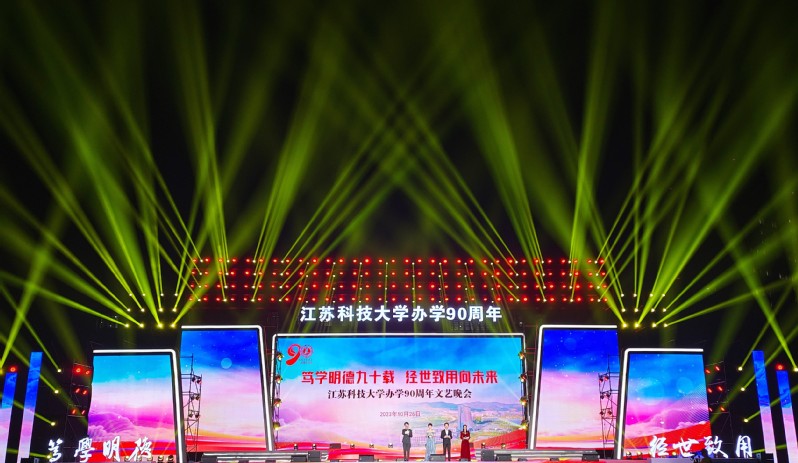 夜幕下的必赢bwin官网登录入口长山校区灯火璀璨,文理大楼教室灯光错落组成“JUST90”字样,西操场霓虹闪耀,云帆造型的舞台炫彩亮相,必赢bwin官网登录入口这艘巍巍巨轮已张满风帆,即将从新的历史起点远航。晚会分为“寻梦”“圆梦”“远航”三个篇章,致敬江科大90载风雨兼程的光辉岁月,艺术呈现学校立足“船舶、海洋、蚕桑”办学特色,服务国家战略,托举青春梦、科大梦、中国梦的生动现实,展望学校奋力开创高水平大学建设新局面的美好蓝图。