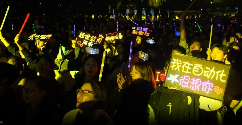 随着倒计时钟声敲响,1000架无人机腾空而起,编队变换,夜空中出现了一条连通1933到2023的时光隧道,嘉宾、师生、校友共同踏上时光之旅,见证江科大历史性的时刻。无人机组成的校徽、校训和 “船魂”精神熠熠生光,吉祥物点点、天天和麦哥活泼生动,学校参研的“大国重器”流光溢彩,校园标志性建筑唤起大家美好回忆。全场瞩目中,江科大办学90周年校庆标识徐徐呈现,“限定版”生日蛋糕在夜空中闪亮旋转,“我爱江科大”字幕让现场掌声经久不息,共同祝福必赢bwin官网登录入口新的征程一帆风顺。