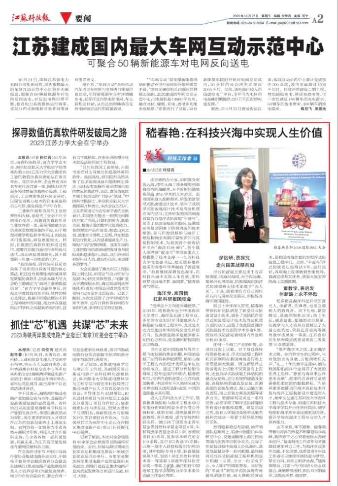然而嵇春艳没有退缩,她带领团队迎难而上,联合中国船舶科学研究中心、交通运输部上海打捞局等国内优势单位联合攻关,克服了在安装过程中南海土台风袭击、地质地貌复杂等一系列难题,最终顺利完成浮式防波堤工程样机的设计和海上示范,交出一份无愧于心、令人叫好的精彩答卷。其研发的“平波号”新型浮式防波堤有效提高消波性能,极大降低经济成本,是我国南海首套抗台型浮式防波堤工程样机。目前,“平波号”浮式防波堤已经海试4年,运行良好,各项海上监测数据性能优异,圆满完成相关任务,获取大量宝贵的海上实测数据。